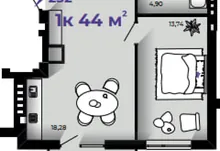 Простора та світла квартира площею 44 м², розташована на 3-му поверсі малоповерхового сучасного комплексу. Продумане планування створює комфортний простір для життя, а кухня 18 м² стане ідеальним місцем для приготування та відпочинку.