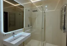 - встановлені дизайнерські світильники та якісна сантехніка;