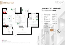 Загальна площа - 64м2.