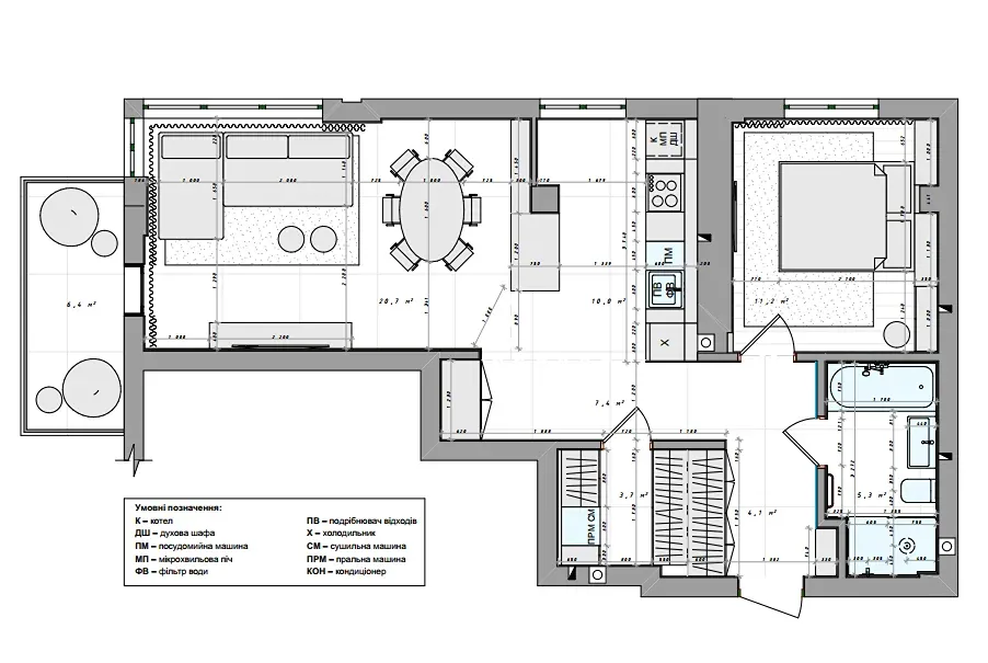 - Висота стелі 3 м2, відчуття простору та світла;