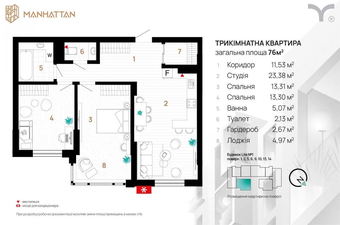 - практичного планування: дві окремі кімнати, простора кухня студія з можливістю зонування робочої та відпочинкової зони;