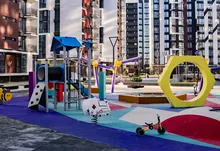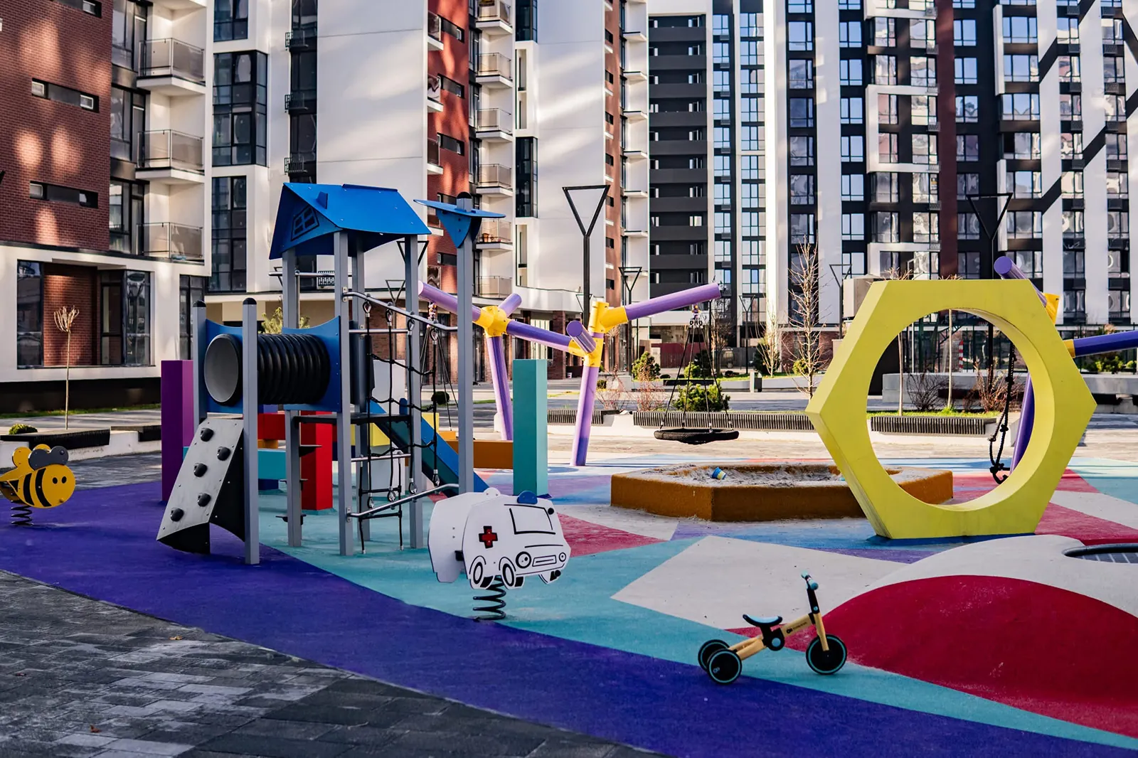 Просторий внутрішній двір, закритого типу з підземним паркінгом. На території Житлового комплексу сучасні дитячі та спортивні майданчики, зони відпочинку з ландшафтним дизайном, магазини та дитячий садок.