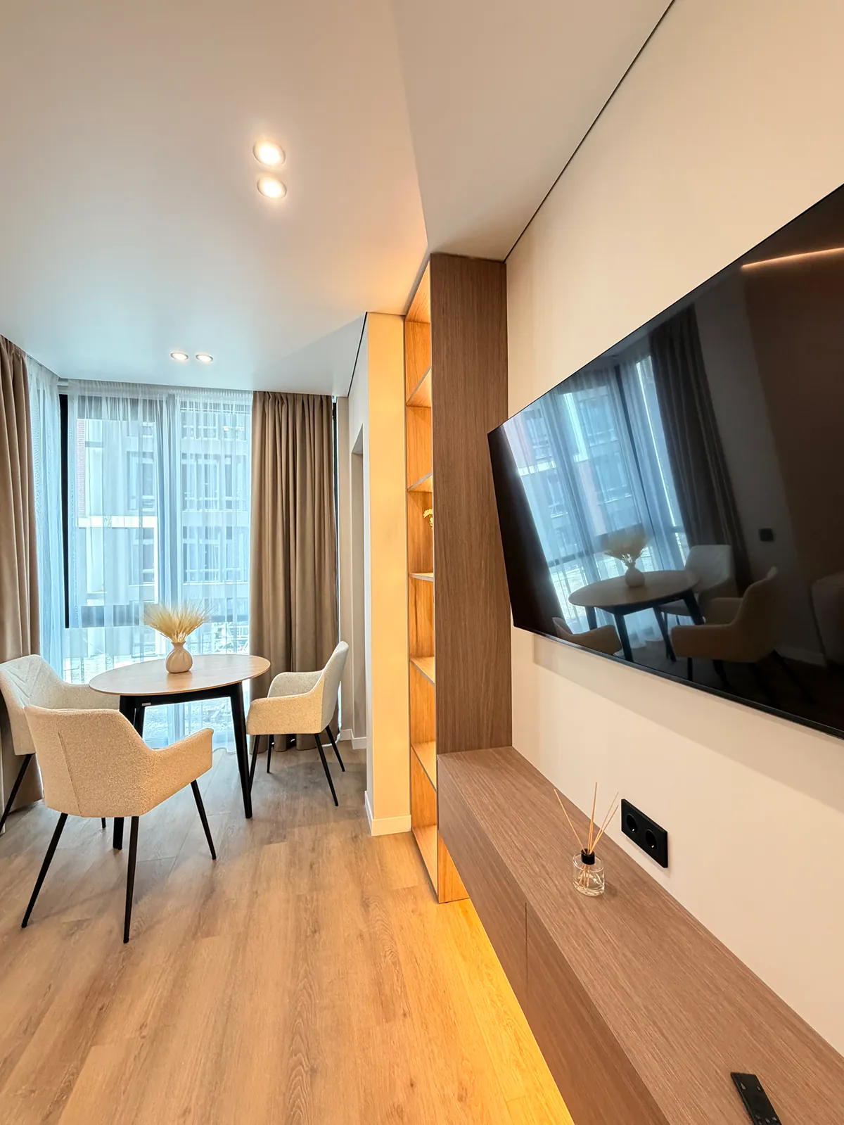 Здається стильна та комфортна 1,5-кімнатна квартира у сучасному житловому комплексі Manhattan, розташованому поруч із міським озером та неподалік центру міста.