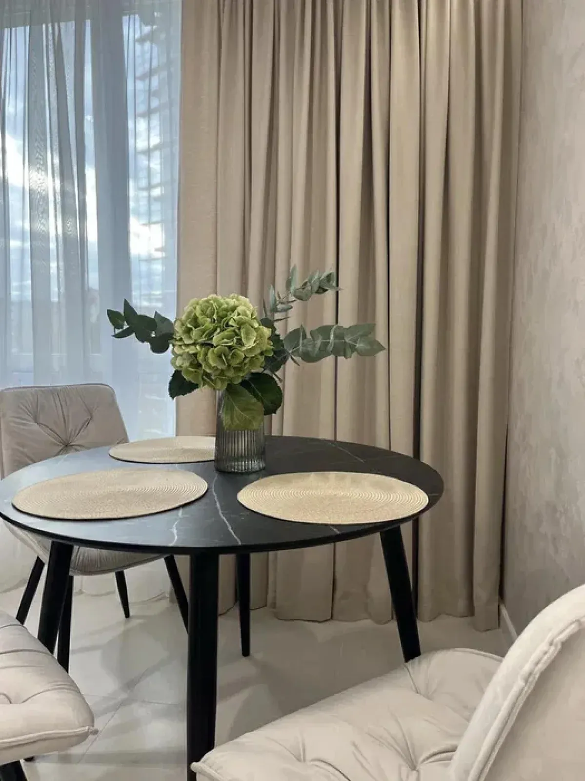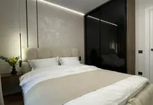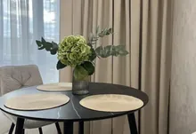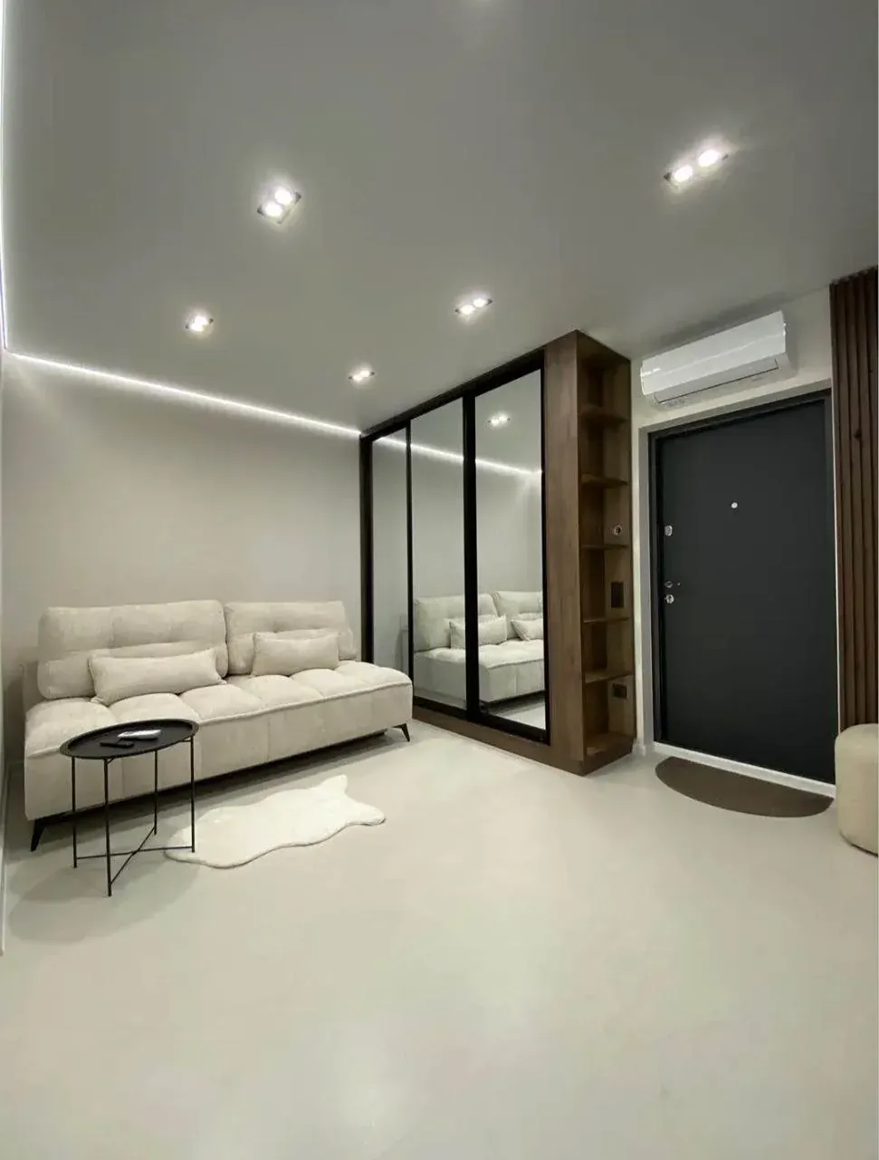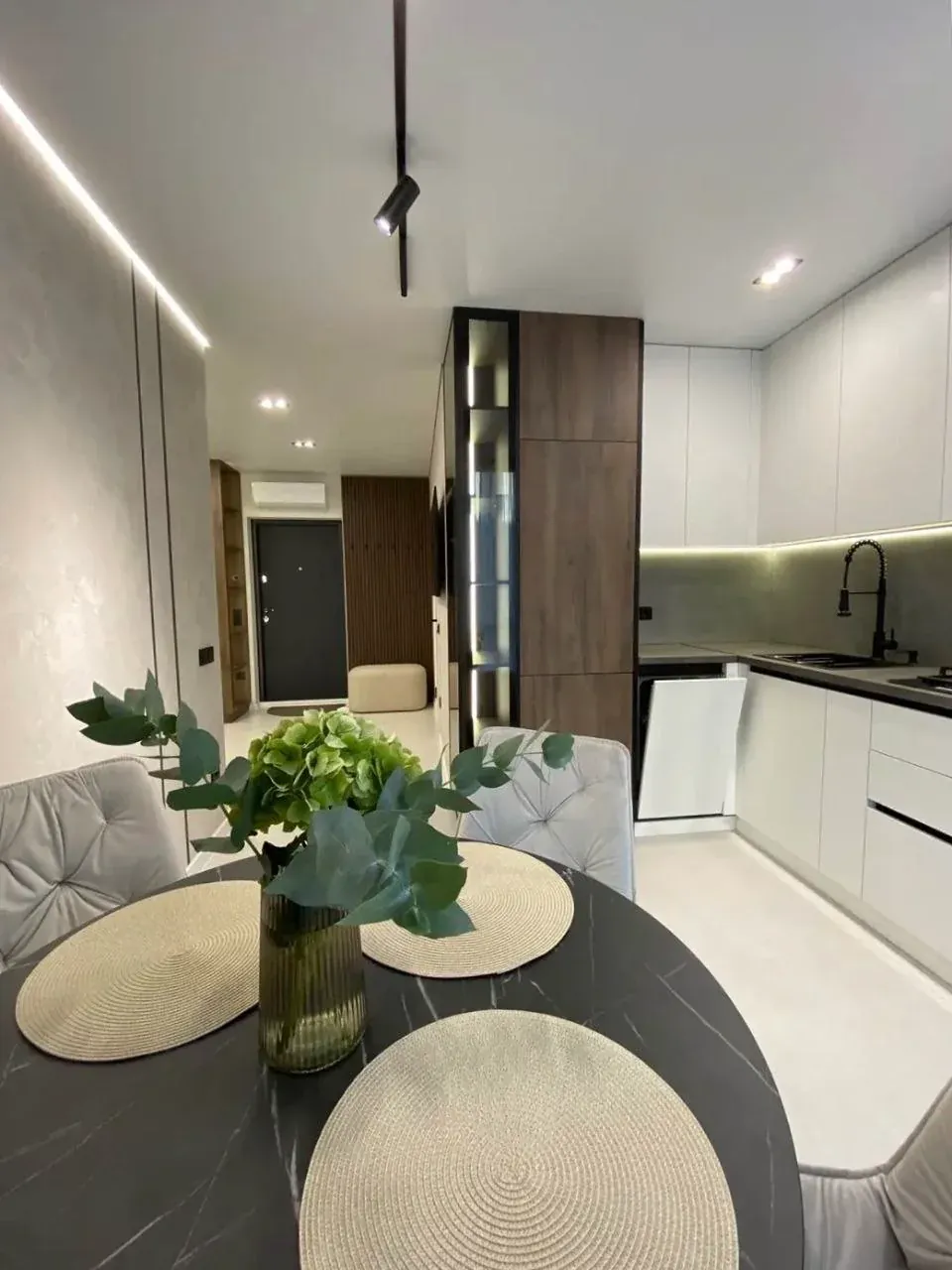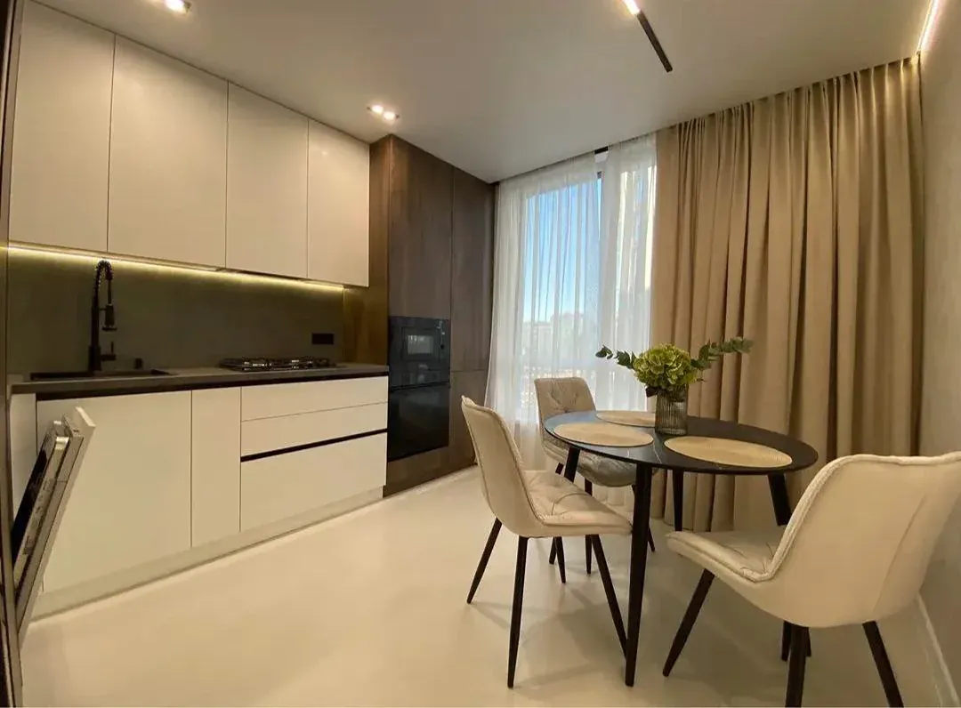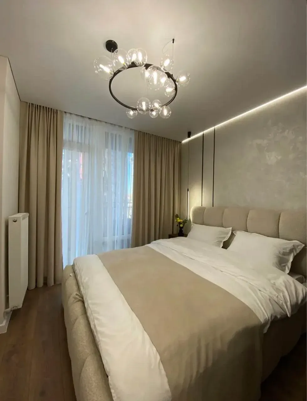 Функціонально перепланована в півтори кімнатну квартиру: простора кухня, окрема відпочинкова зона вітальні, затишна спальня з відкритим балконом.