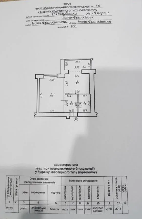 Квартира загальною площею 38м2;