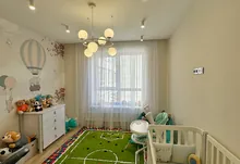 Квартира функціонального планування: простора кухня з відкритою лоджією, три окремі кімнати: спальня з балконом, дитяча кімната, простора та затишна вітальня.