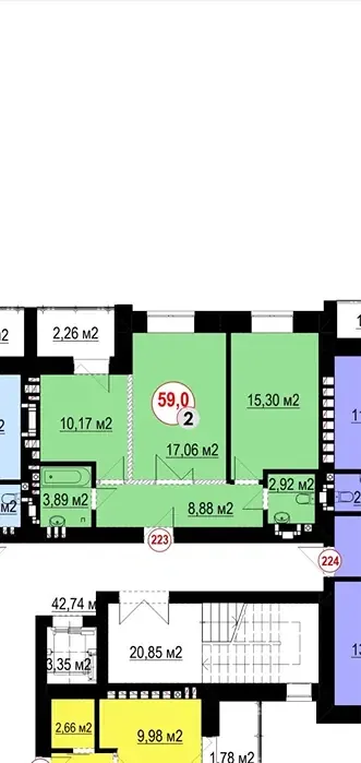 Загальна площа - 59м2