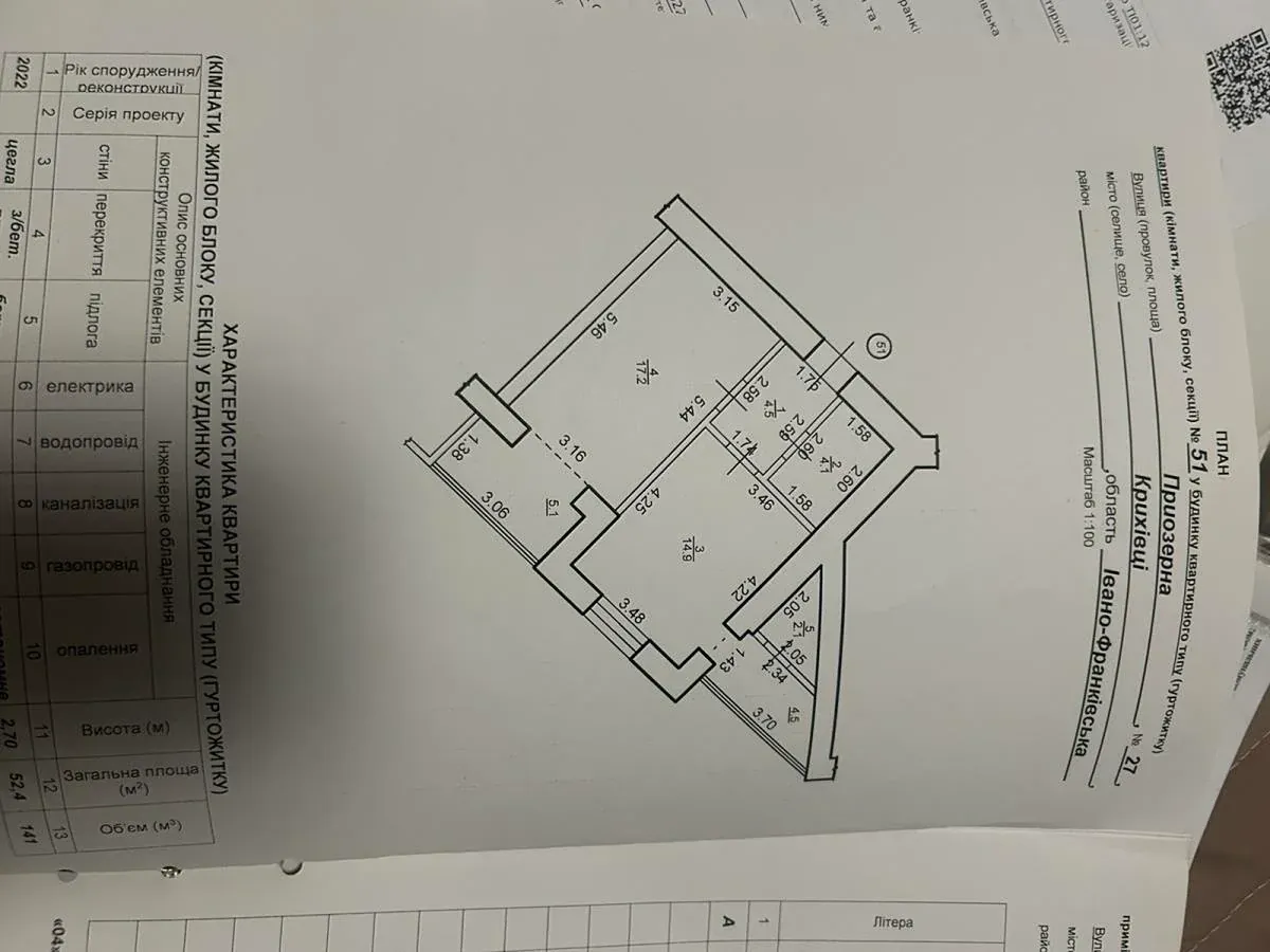 Квартира простора та затишна, загальною площею 52.4 м2.
