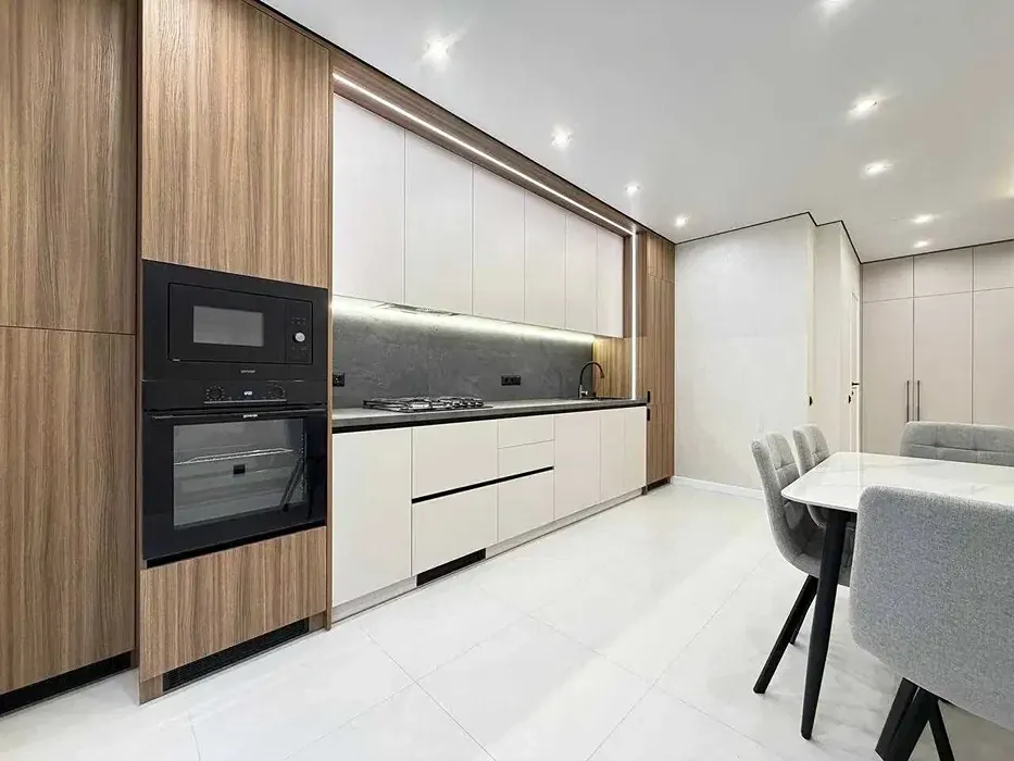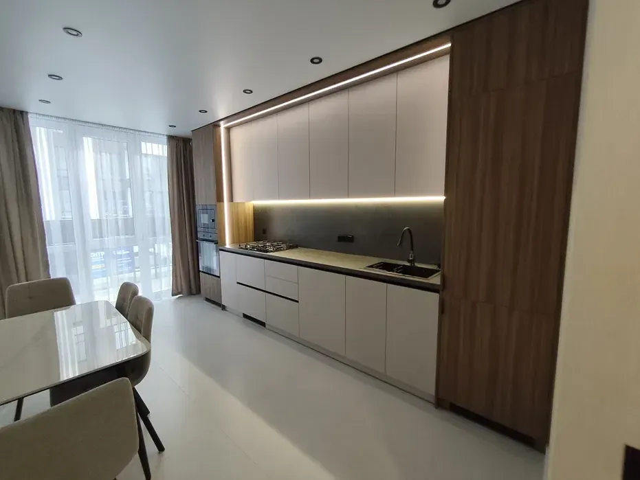 - Функціональне планування квартири: велика кухня 15м2, простора кімната, окрема відпочинкова зона, зона вітальні, коридор з гардеробною та місткою шафою для зберігання.