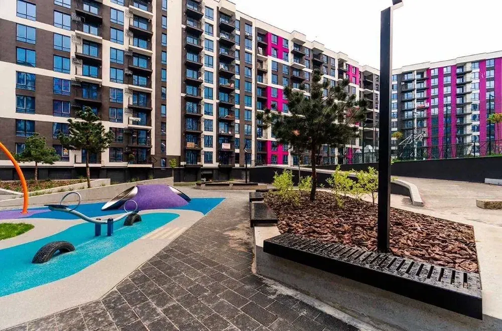Сучасний житловий комплекс з великим внутрішнім двором закритого типу, високий ступінь безпеки, на території ЖК: дитячі та спортивні майданчики, спортивні поля, зони відпочинку з ландшафтним дизайном.
