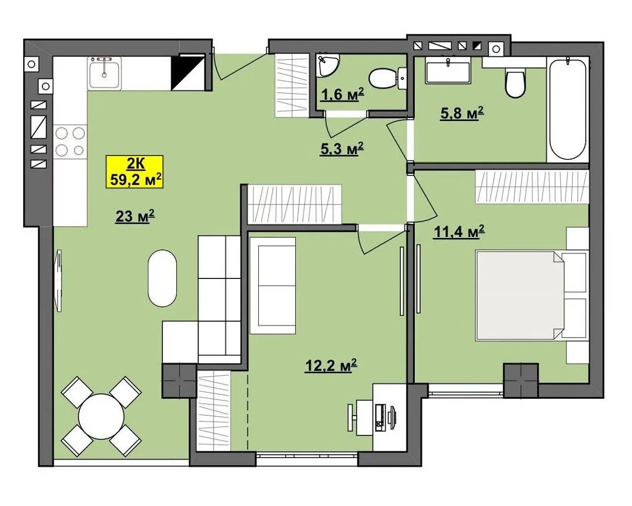 Ідеальне планування: дві окремі кімнати, велика кухня і гардероб