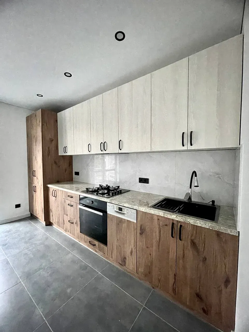 Вмонтована кухня з побутовою технікою (варильна поверхня, духовка, витяжка, пусодомийка, газовий котел)