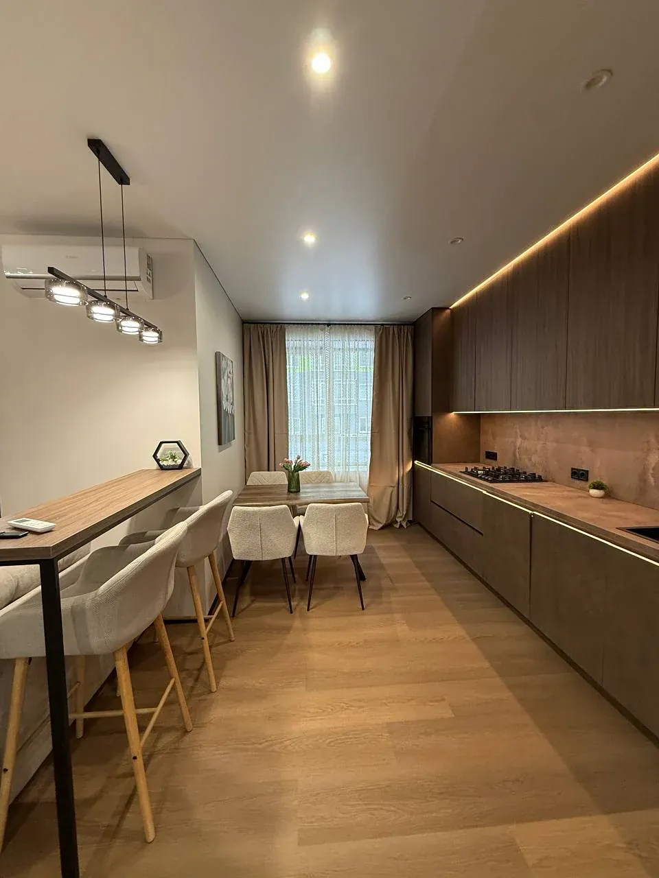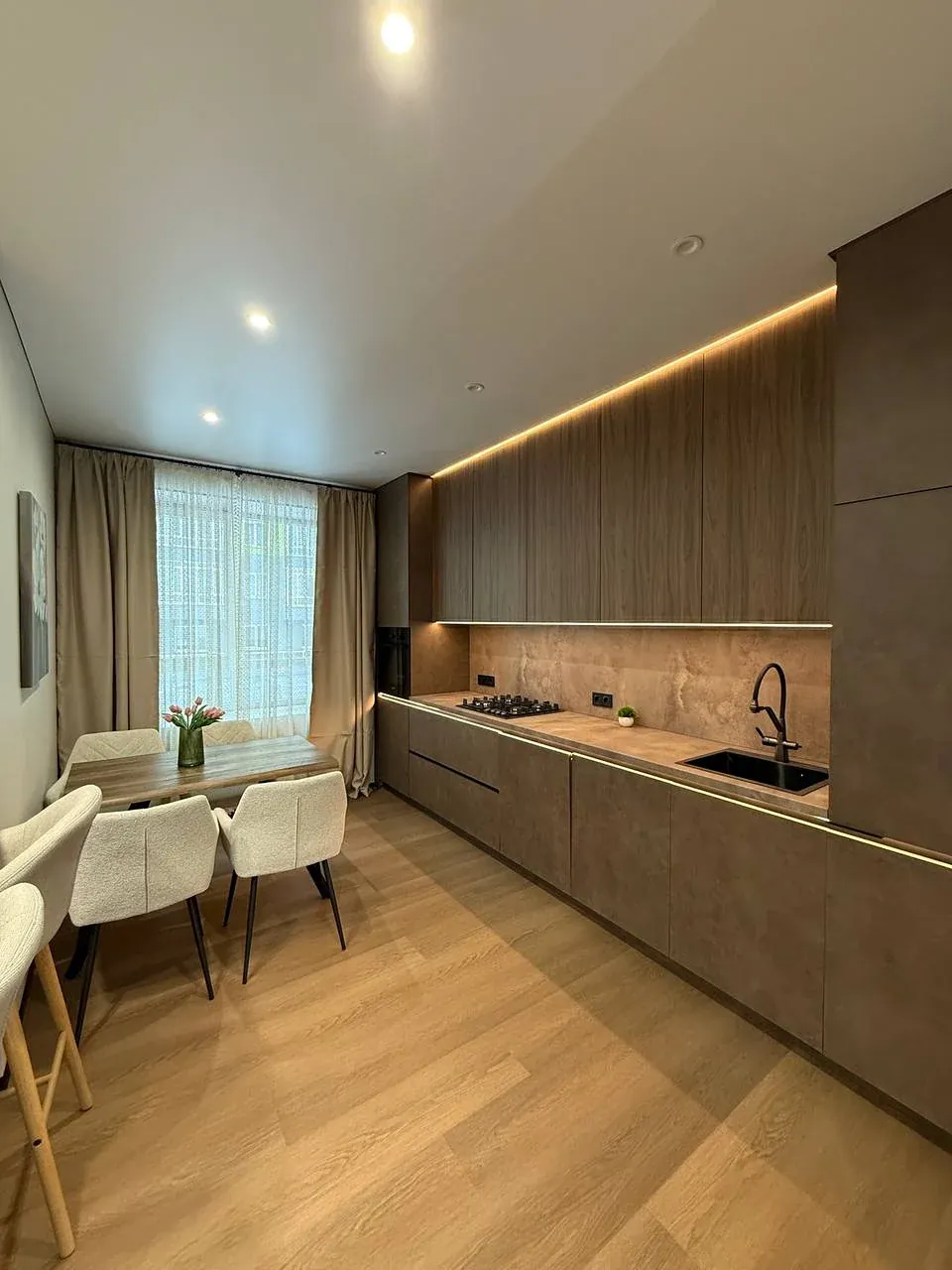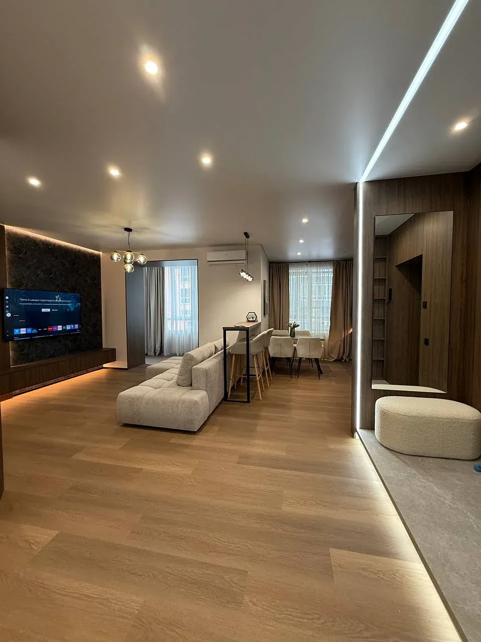 Індивідуальне опалення, тепла підлога по всій квартирі, зональне, декоративне та бігуче підсвічування — комфорт продуманий у кожній деталі.