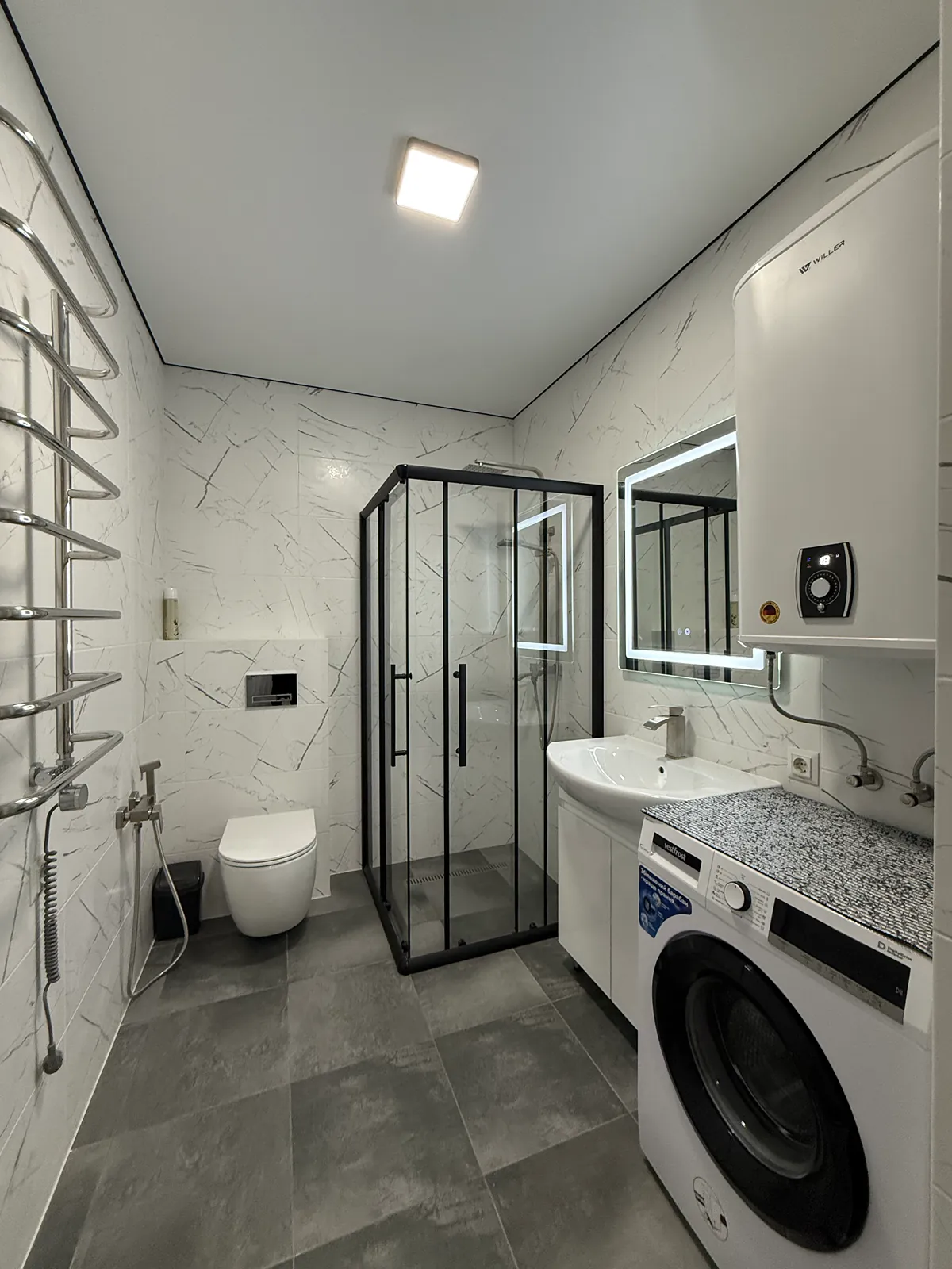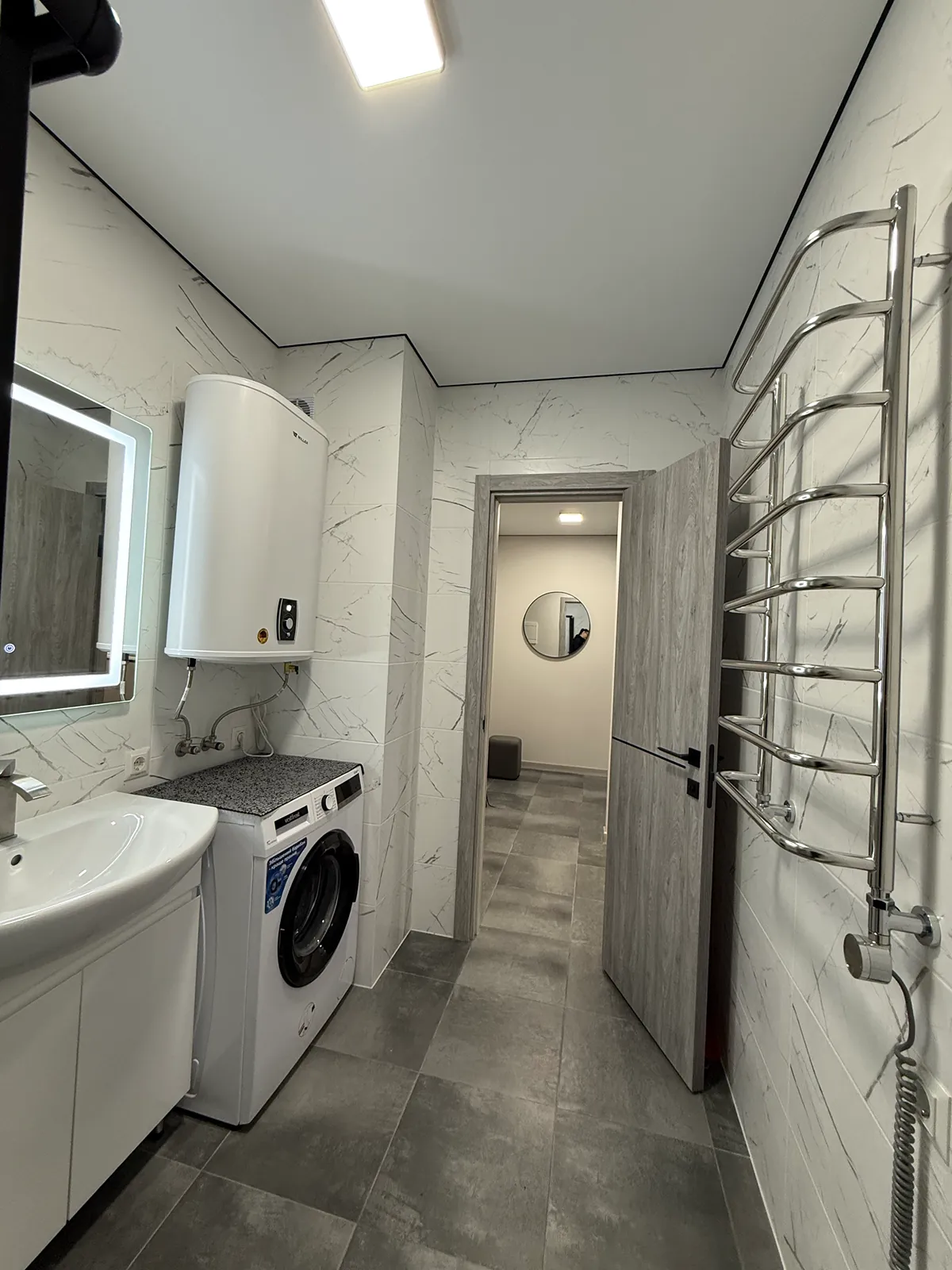 Квартира розташована в одному з районів із найкраще розвиненою інфраструктурою: поруч знаходяться торговельні центри, супермаркети, зупинки громадського транспорту, швидка та зручна транспортна розвʼязка. Локація — недалеко від центру міста.