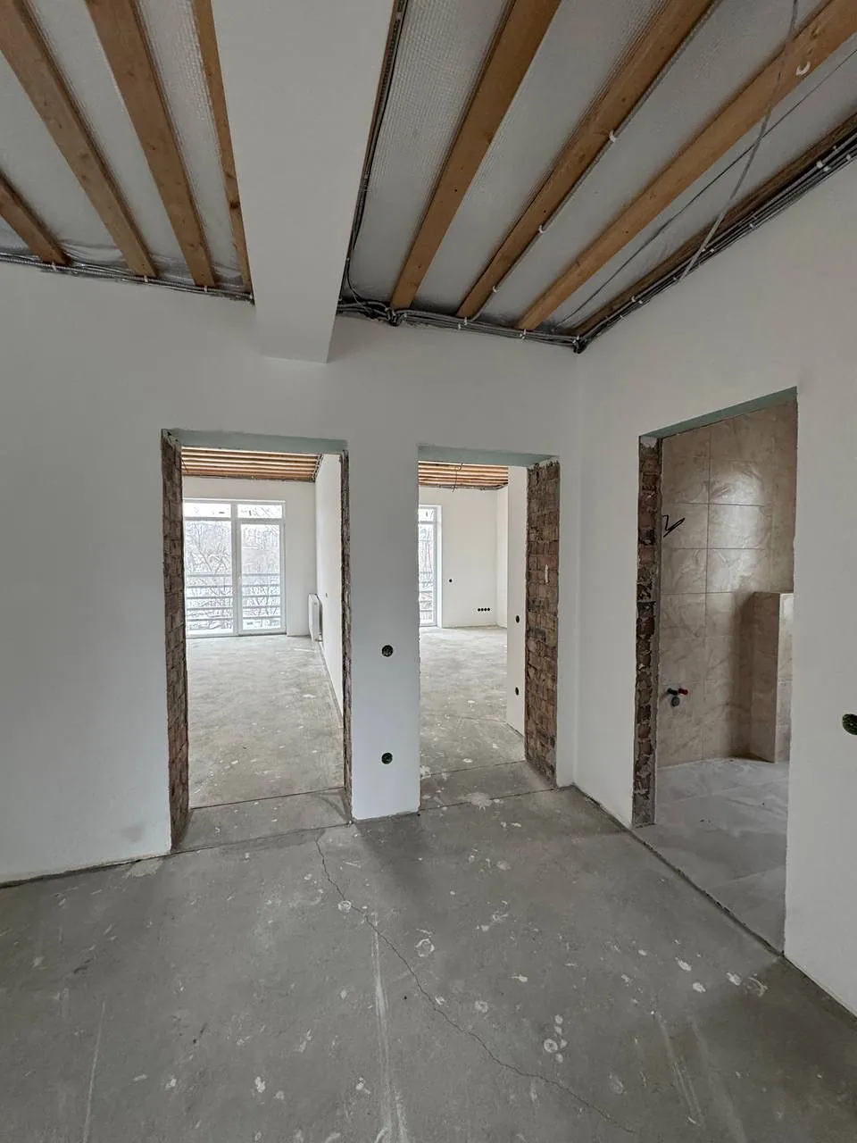2-й поверх: три окремі кімнати з виходом на балкон, простора гардеробна з вікном (за потреби можна облаштувати під ще одну кімнату, просторий санвузол.