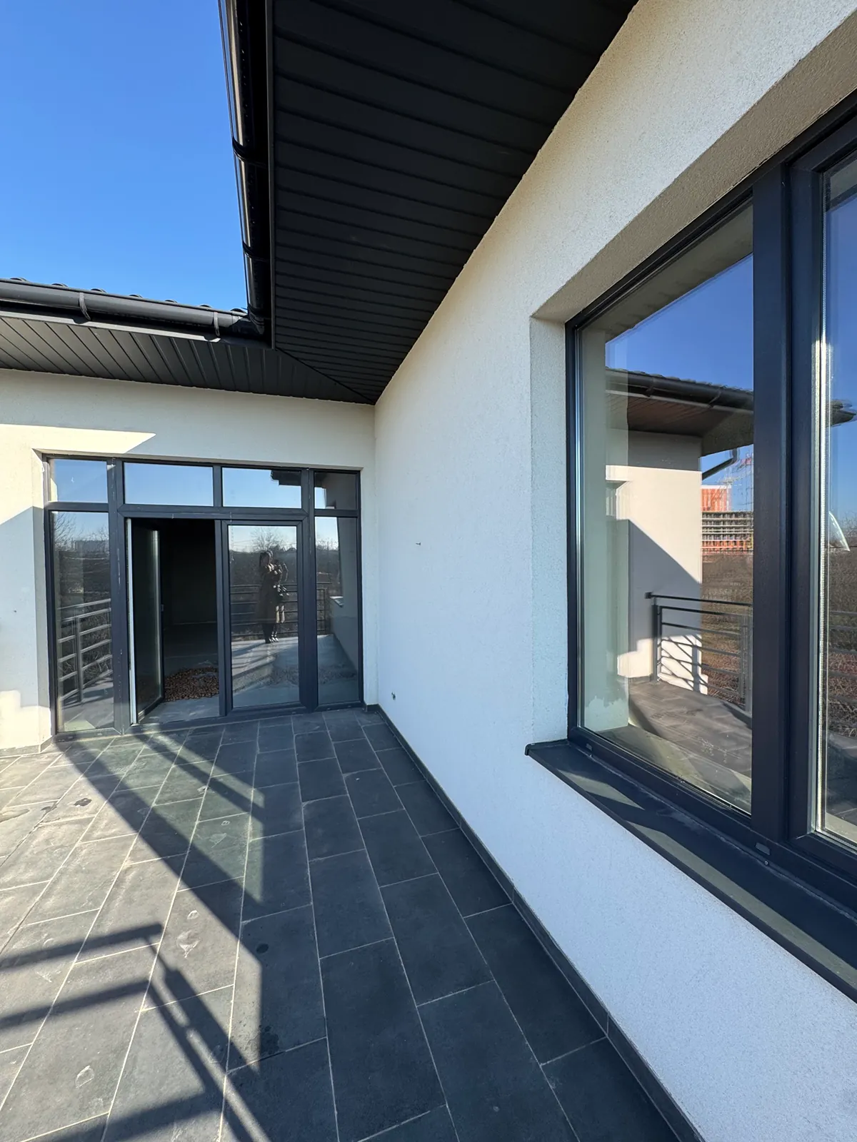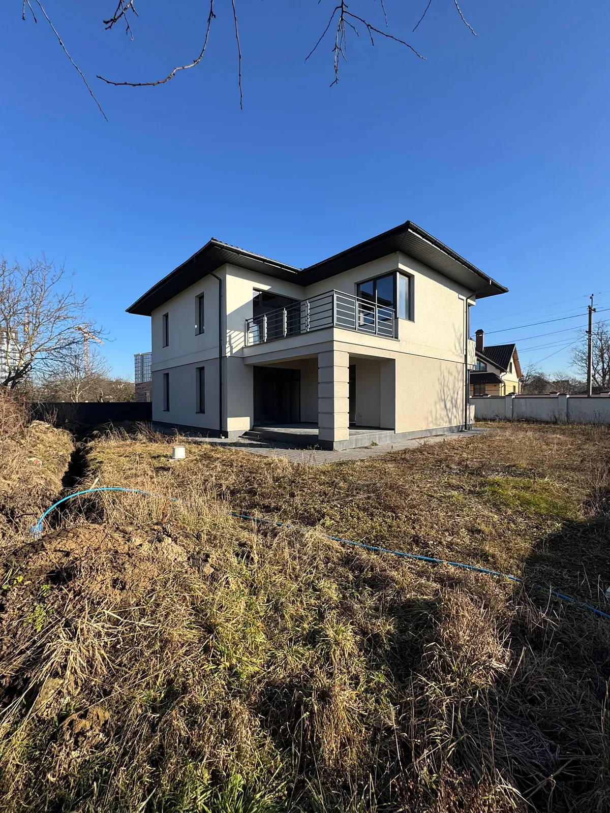 Комфортний будинок на 5-ть кімнат з ефективно продуманим плануванням з просторою залою вітальнею та кухнею, 4-ма окремими спальнями, просторою терасою на другому поверсі, двома санвузлами, гардеробною та технічними приміщеннями.