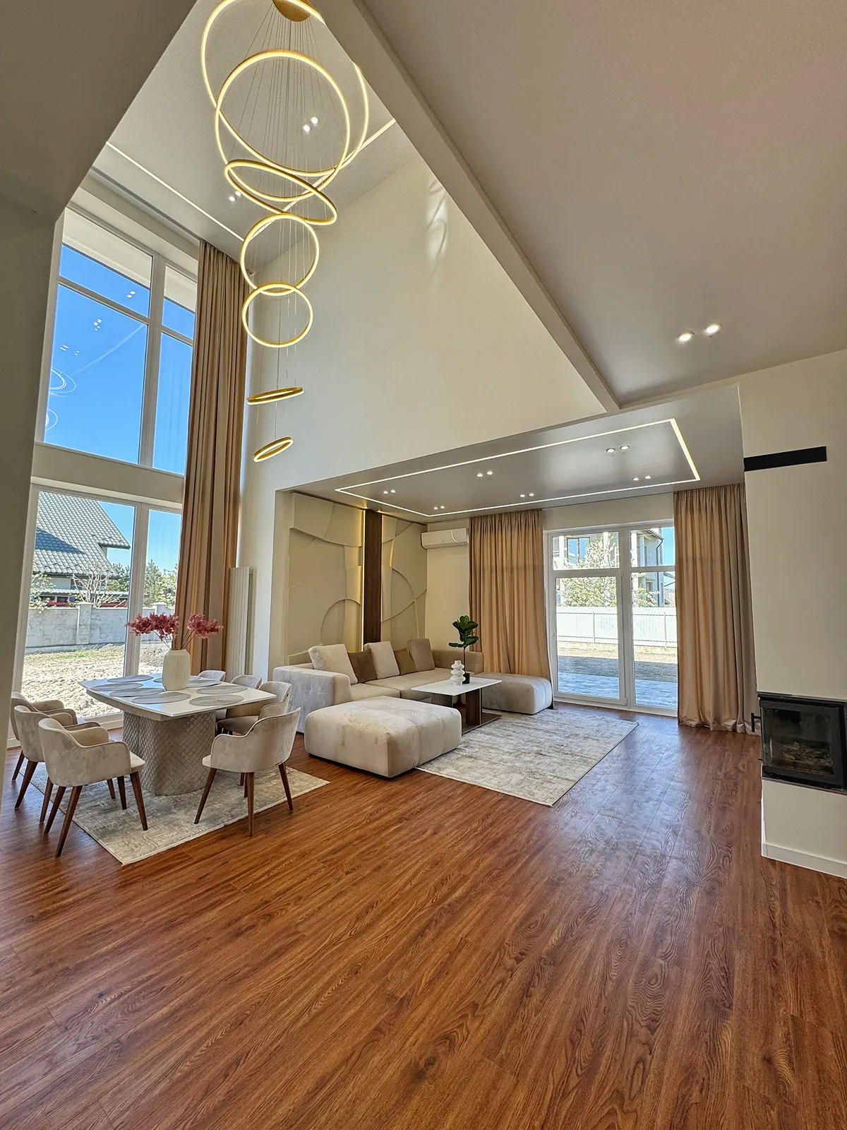 Ремонт в будинку виконаний за дизайнерським проєктом, з якісних матеріалів, використано багато додаткового освітлення, вмонтовано камін, що додає затишку, високої якості меблі та побутова техніка.