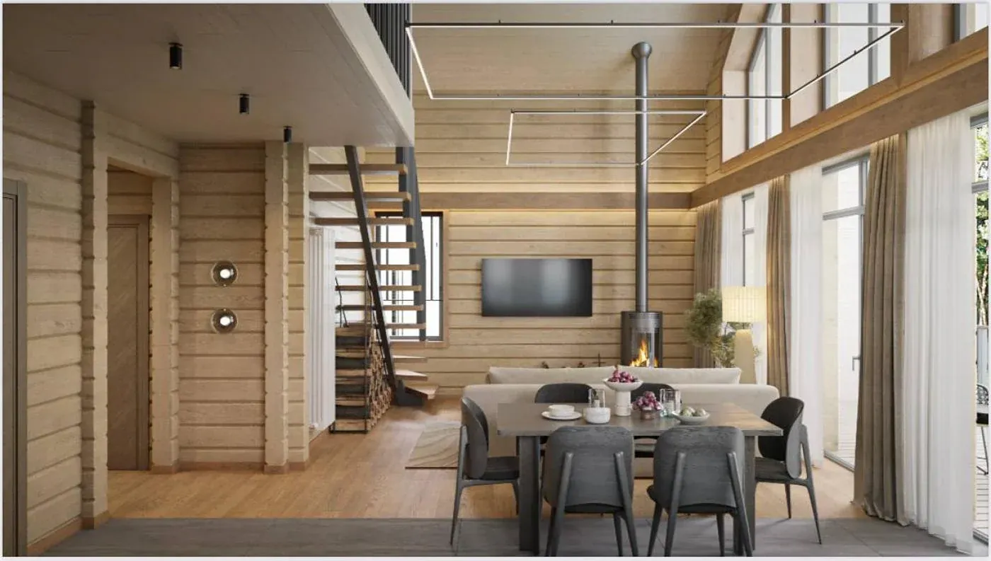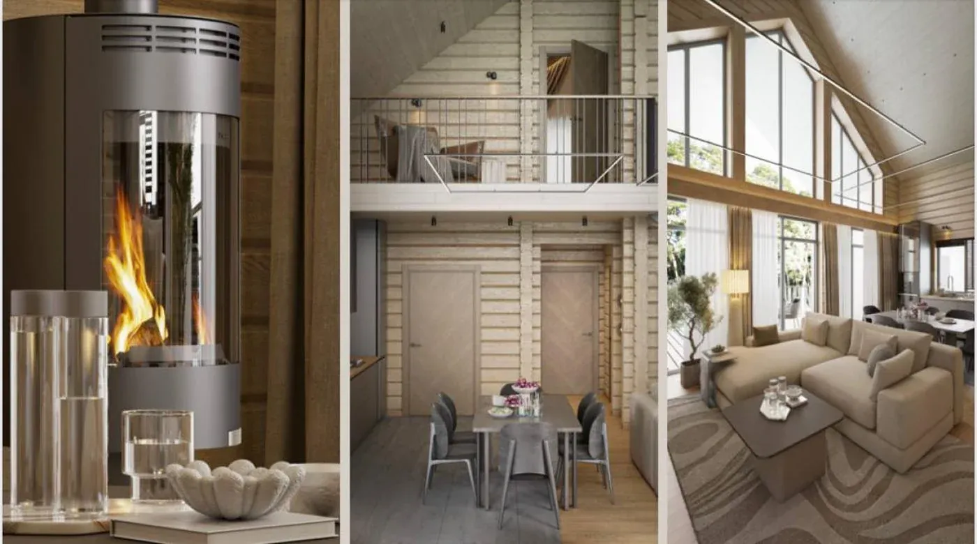 • Кухня-студія з каміном — затишок та сучасний стиль;