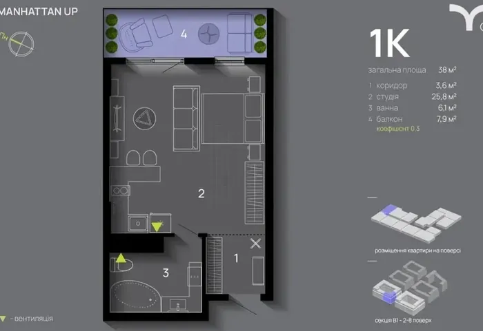 1-кімнатна в ЖК Manhattan Up