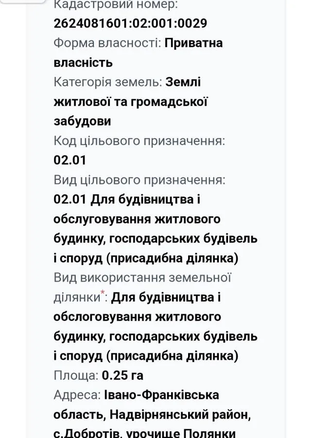 Цільове призначення: Для будівництва і обслуговування житлового будинку.