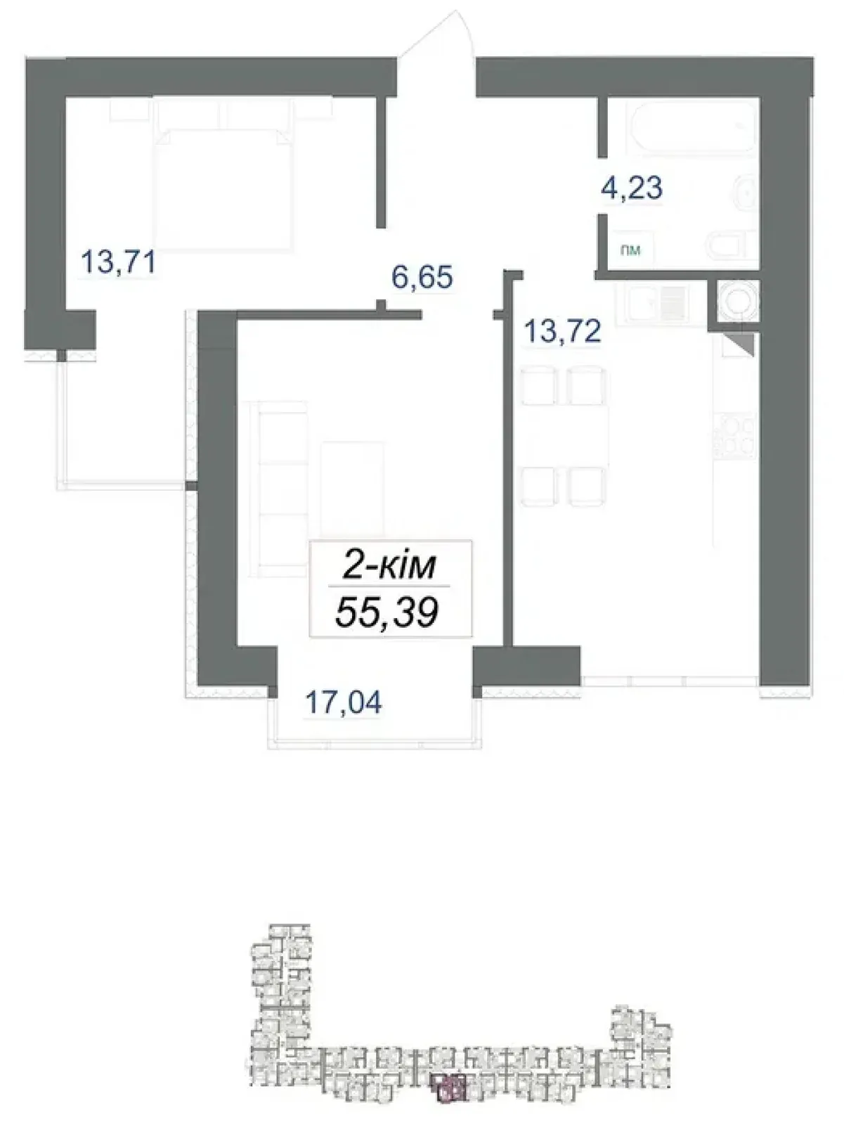 Загальна площа 55.39м2;