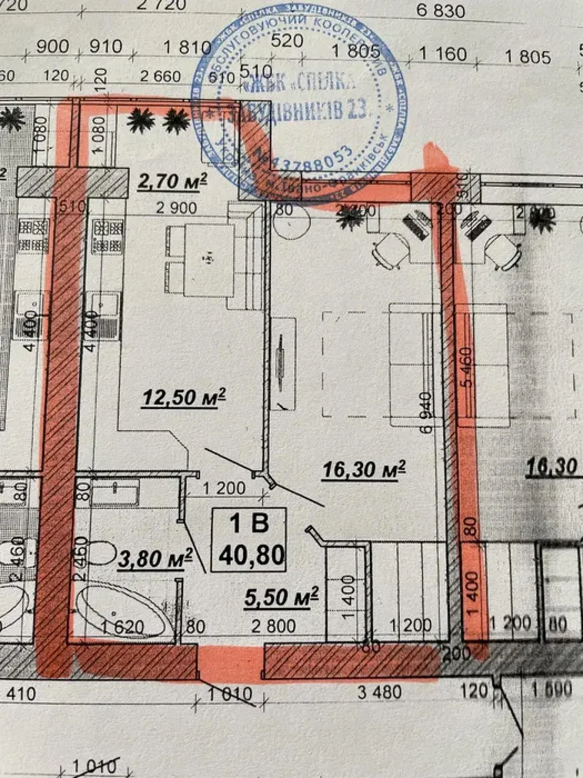 Загальна площа -40.8м2;