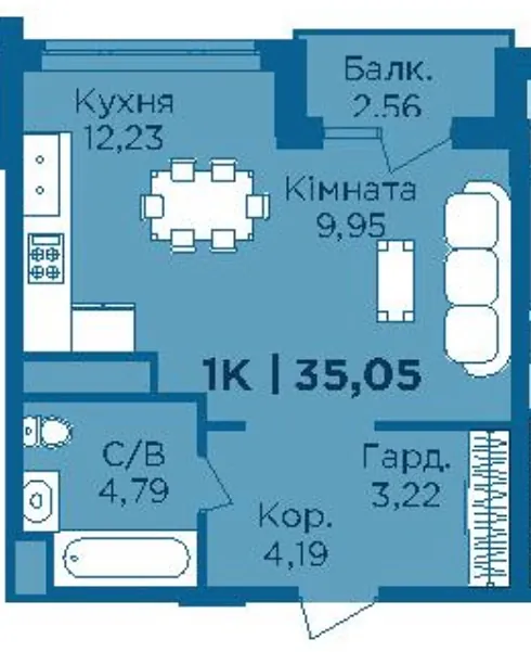 • Площа: 35 м²
