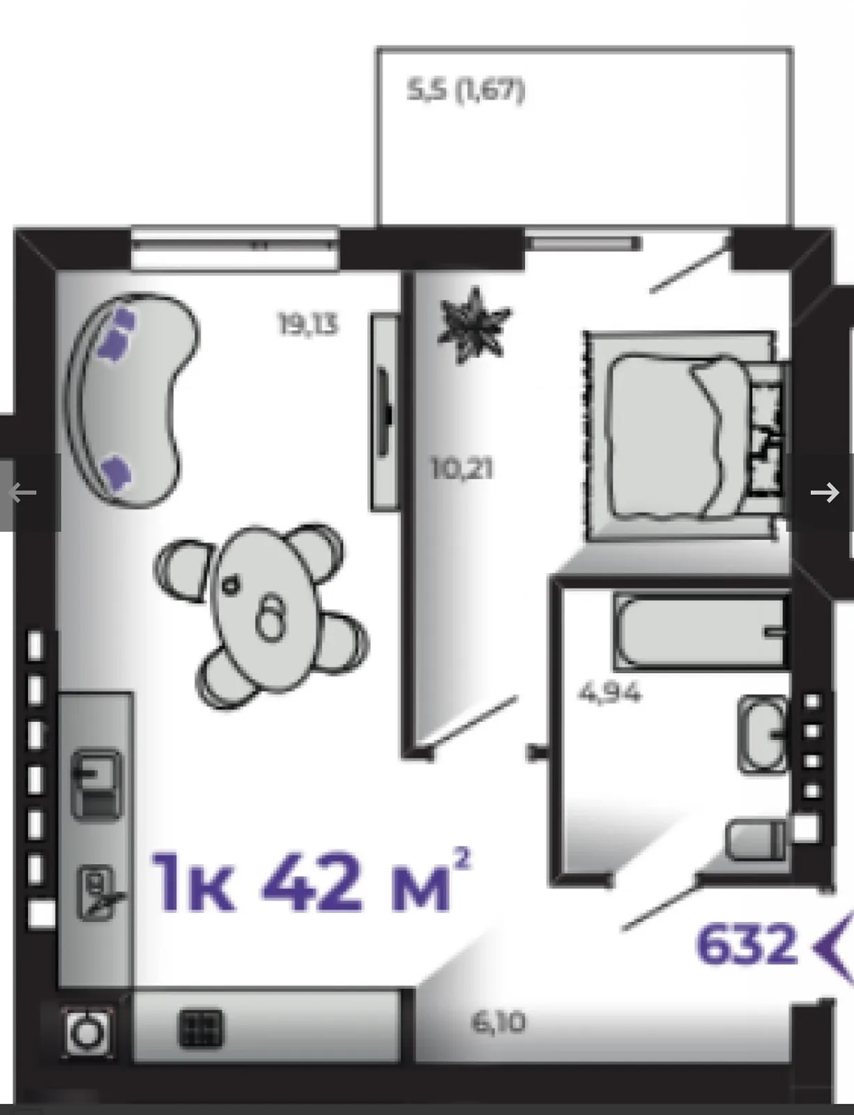 Площа 42 м², 3-й поверх малоповерхового комплексу.