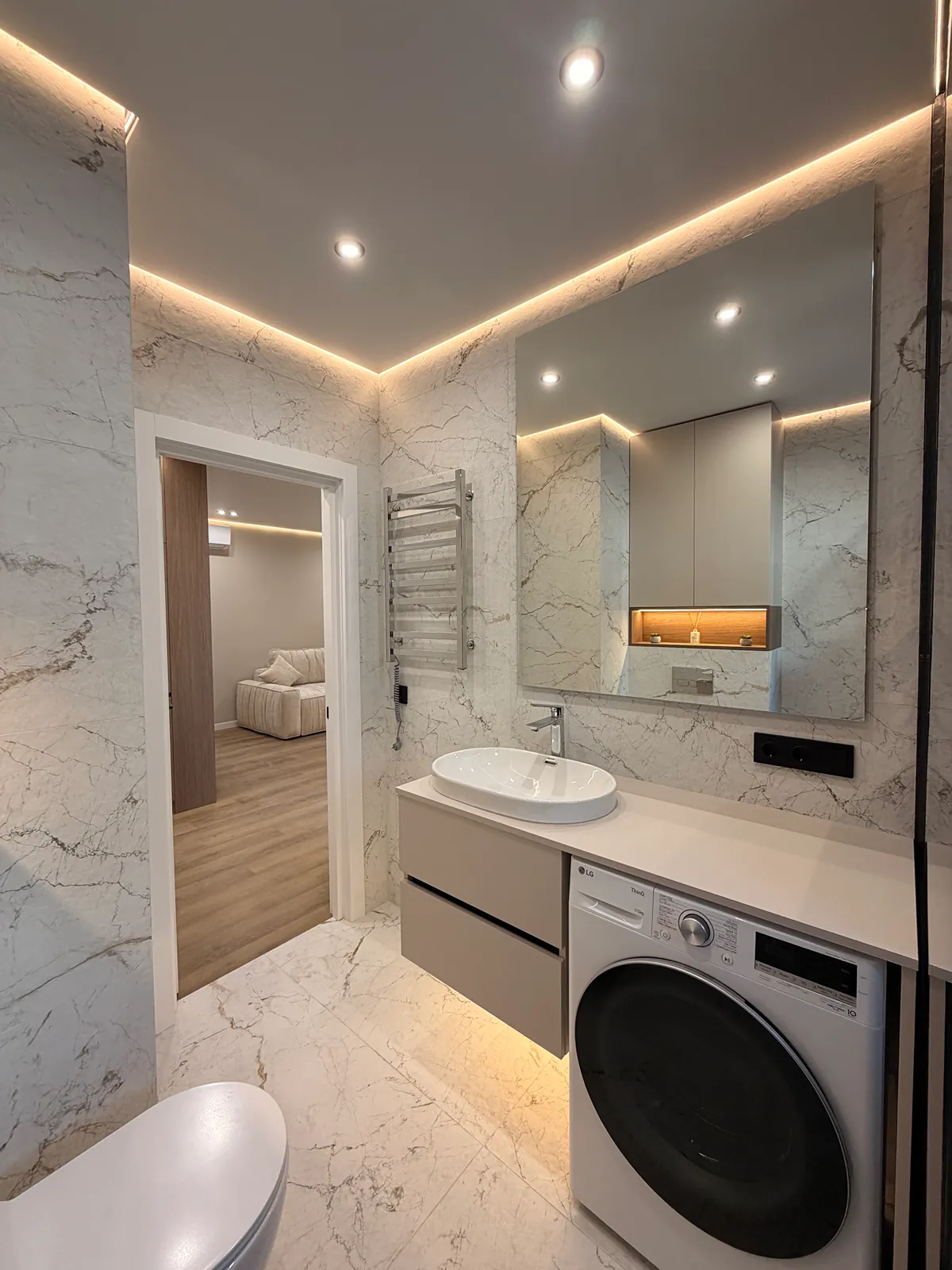 Квартира повністю укомплектована якісними меблями та дорогою побутовою технікою: