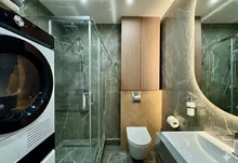 - Укомплектована всією необхідною технікою від виробників Samsung та Bocsh: вбудовані холодильник, духова шафа, мікрохвильова, газова варильна поверхня, три телевізори один на 65 дюймів MINI Led, пральна та сушка машина.