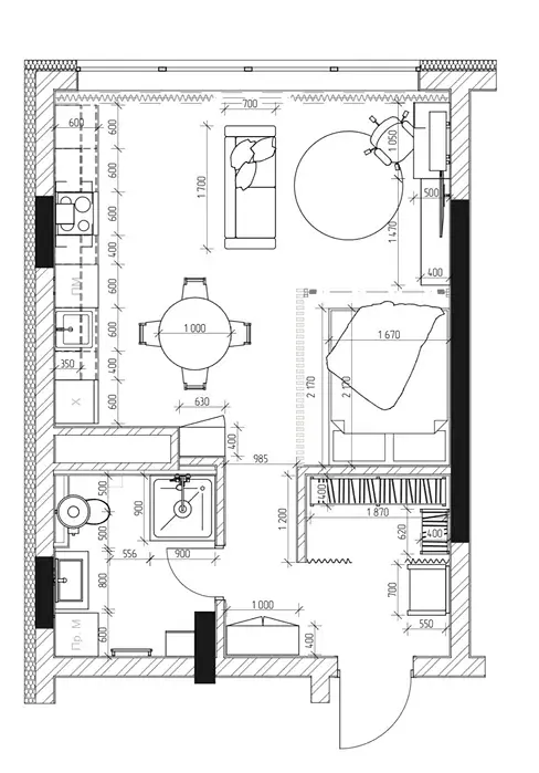 - Квартира-студія загально площею 42м2, з виділеною відпочинковою зоною, продумана для комфортного проживання.