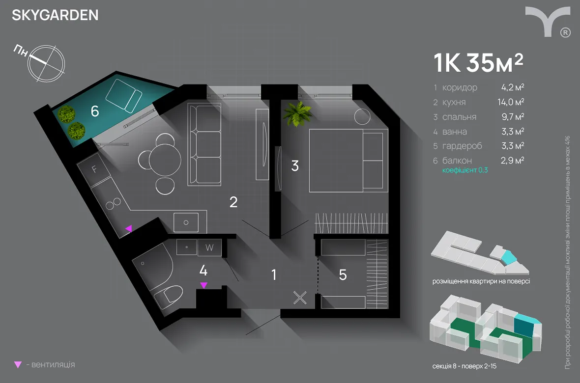 1-кімнатна квартира в ЖК Skygarden