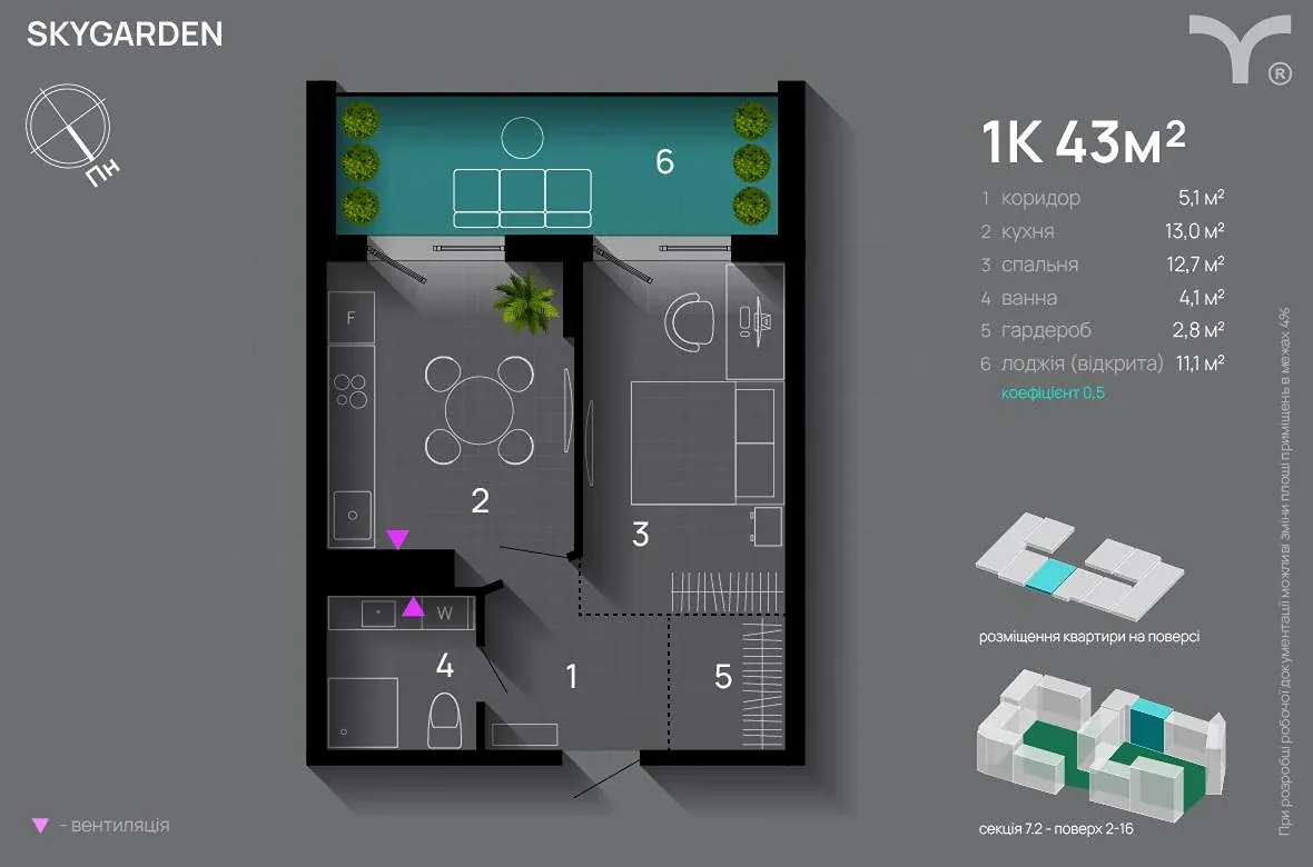 1-кімнатна квартира в ЖК "Скайгарден" — 6 поверх