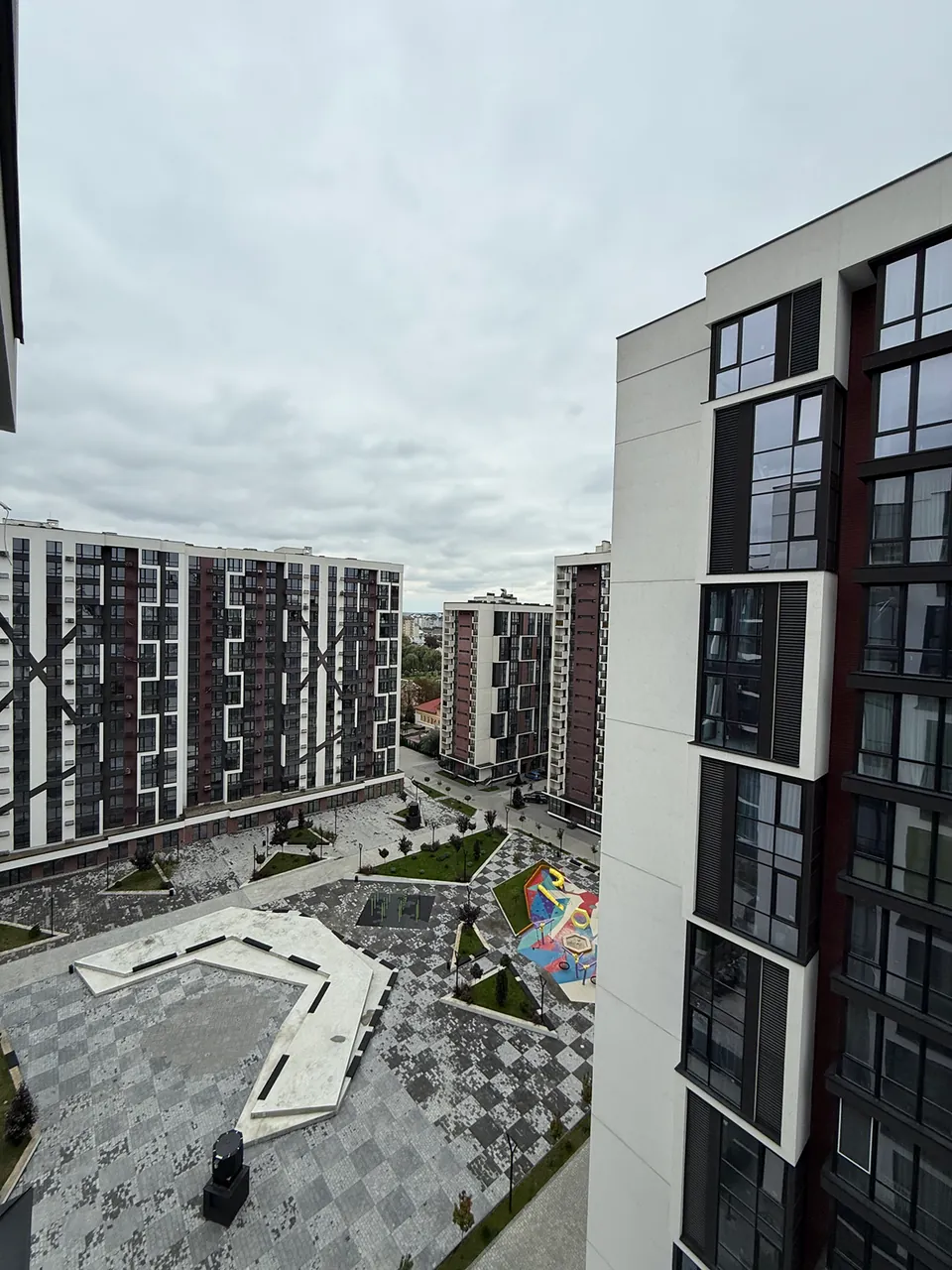Просторий двір з сучасними та безпечними дитячими та спортивними майданчиками, ландшафтним дизайном та відпочинковими зонами.