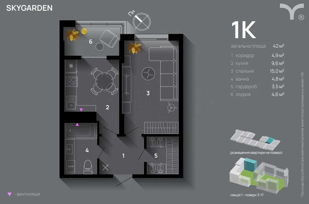 Продаж 1-кімнатної квартири в сучасному комплексі ЖК Skygarden.