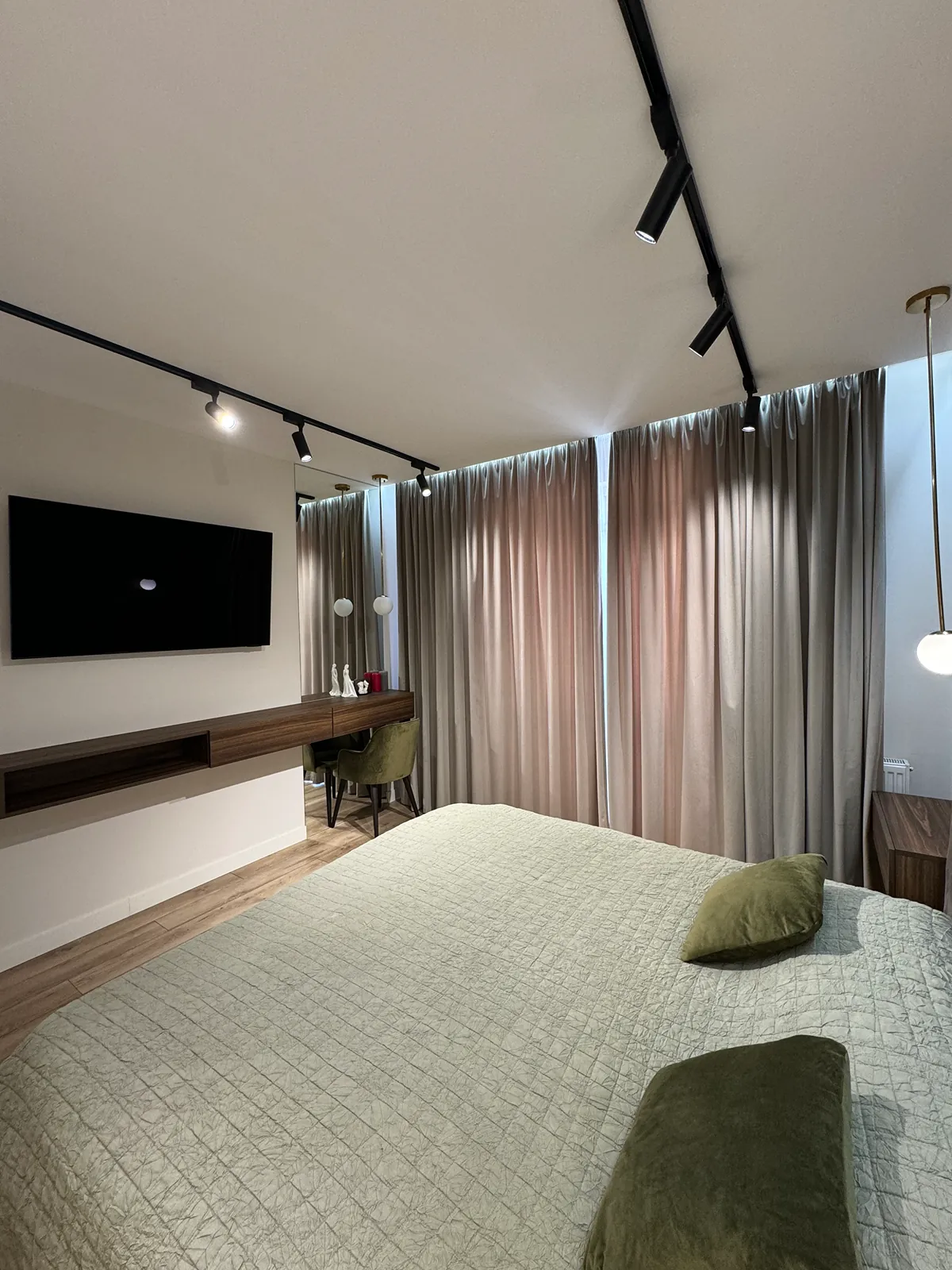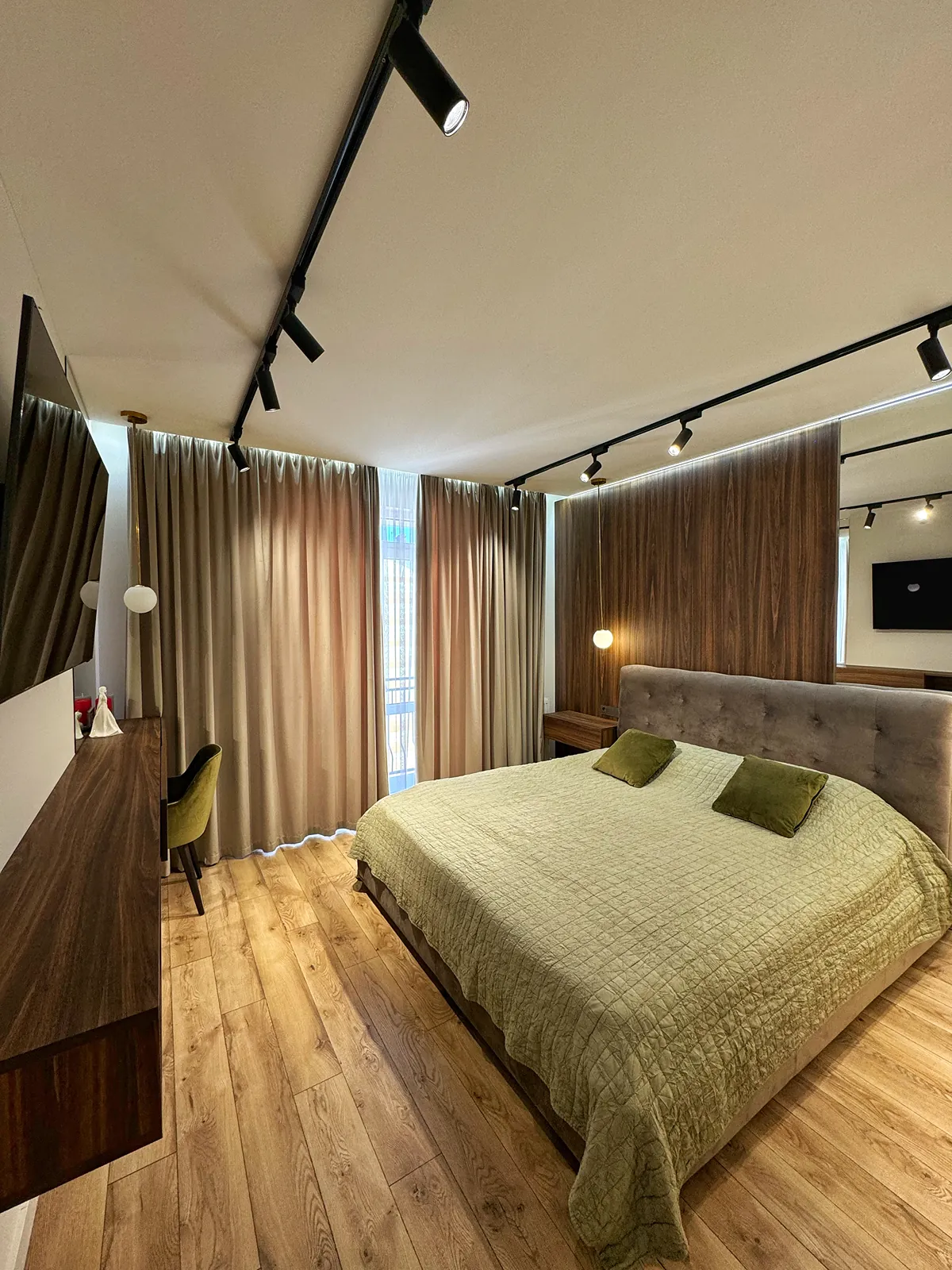 Залишаються всі меблі як на фото, є окрема гардеробна;