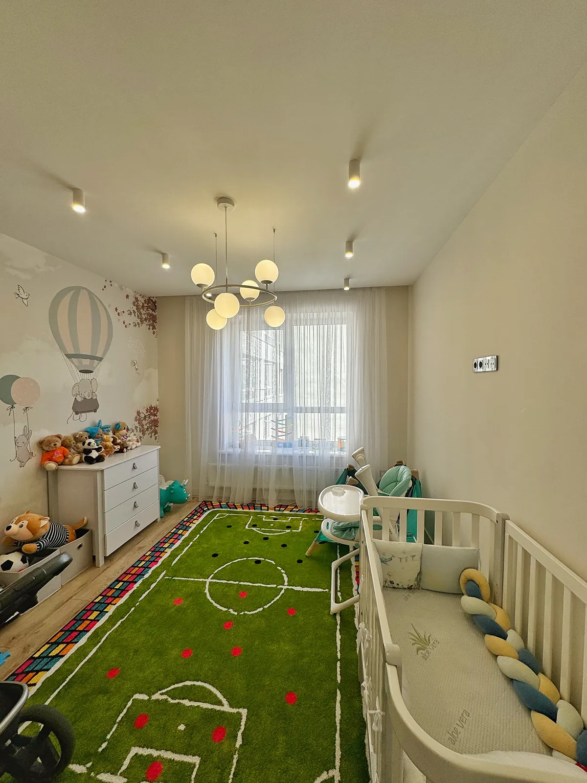 Квартира функціонального планування: простора кухня з відкритою лоджією, три окремі кімнати: спальня з балконом, дитяча кімната, простора та затишна вітальня.