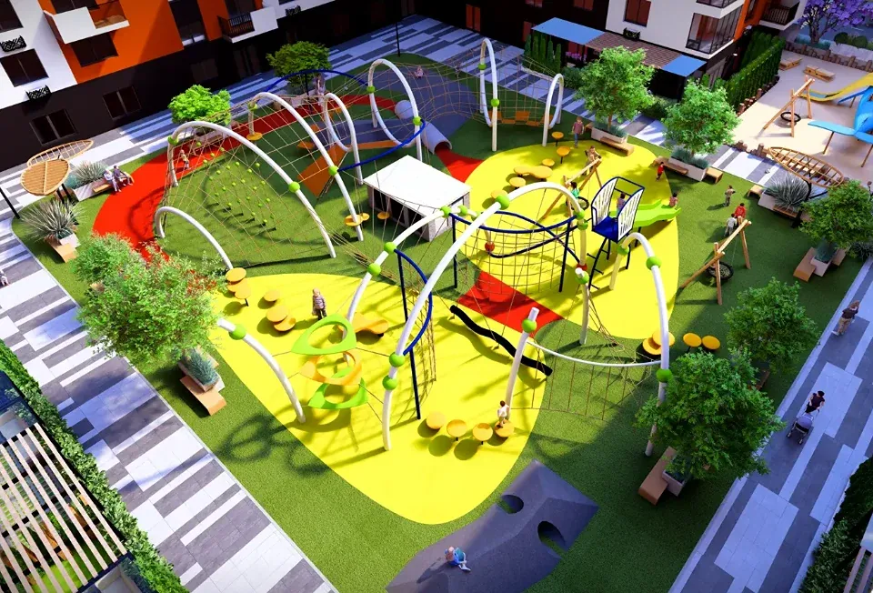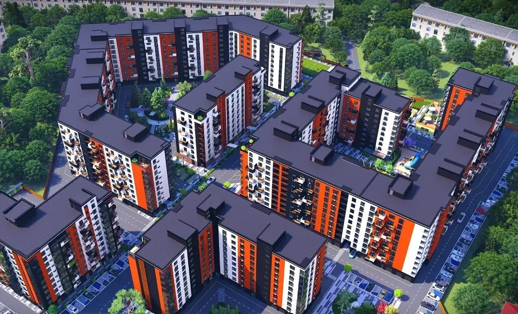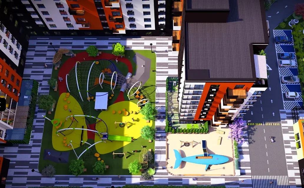 Житловий Комплекс з закритою територією та відео наглядом, підземним паркінгом, на території просторі двори з ландшафтним дизайном, дитячі та спортивні майданчики.