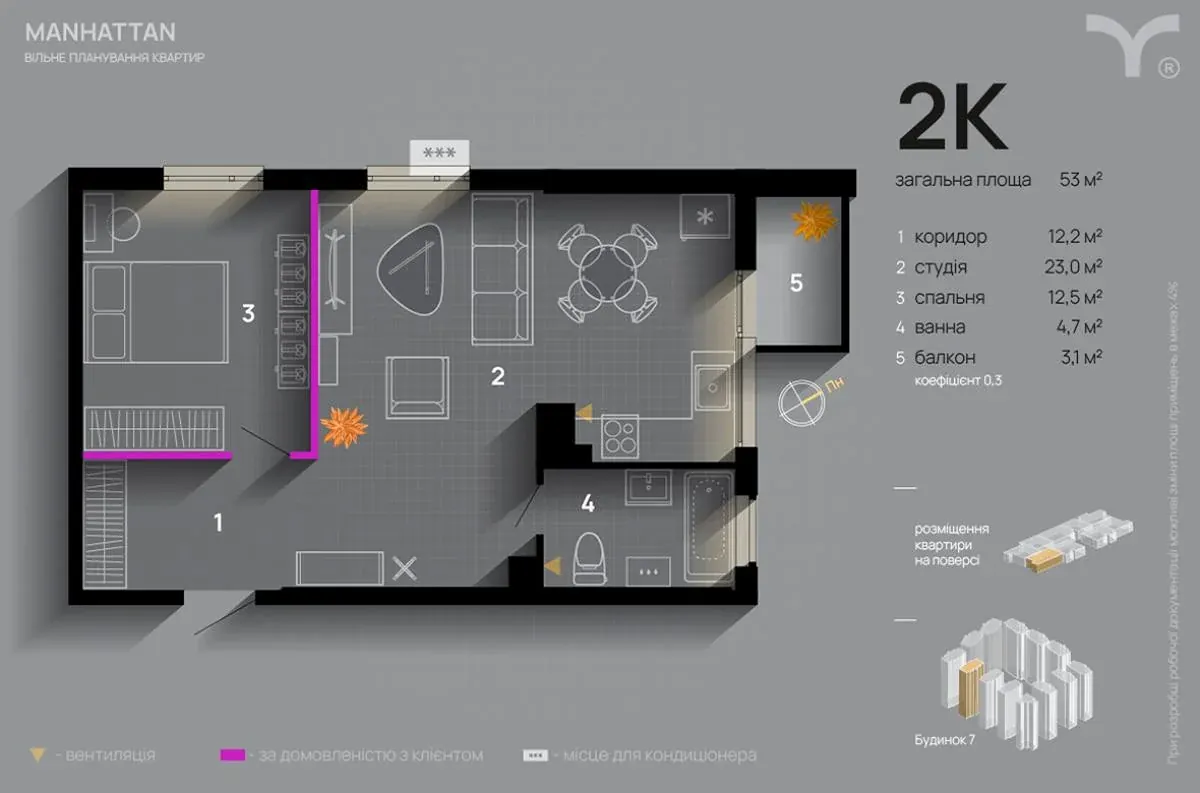 ЗАВДАТОК! 1-кімнатна квартира в ЖК "Manhattan" з виглядом міське озеро