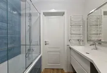 - Велике дзеркало у ванній на всю стіну з підсвіткою.