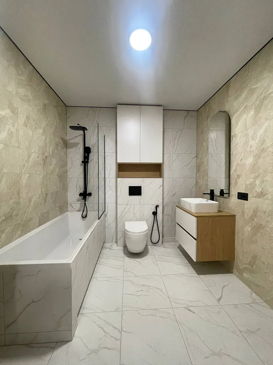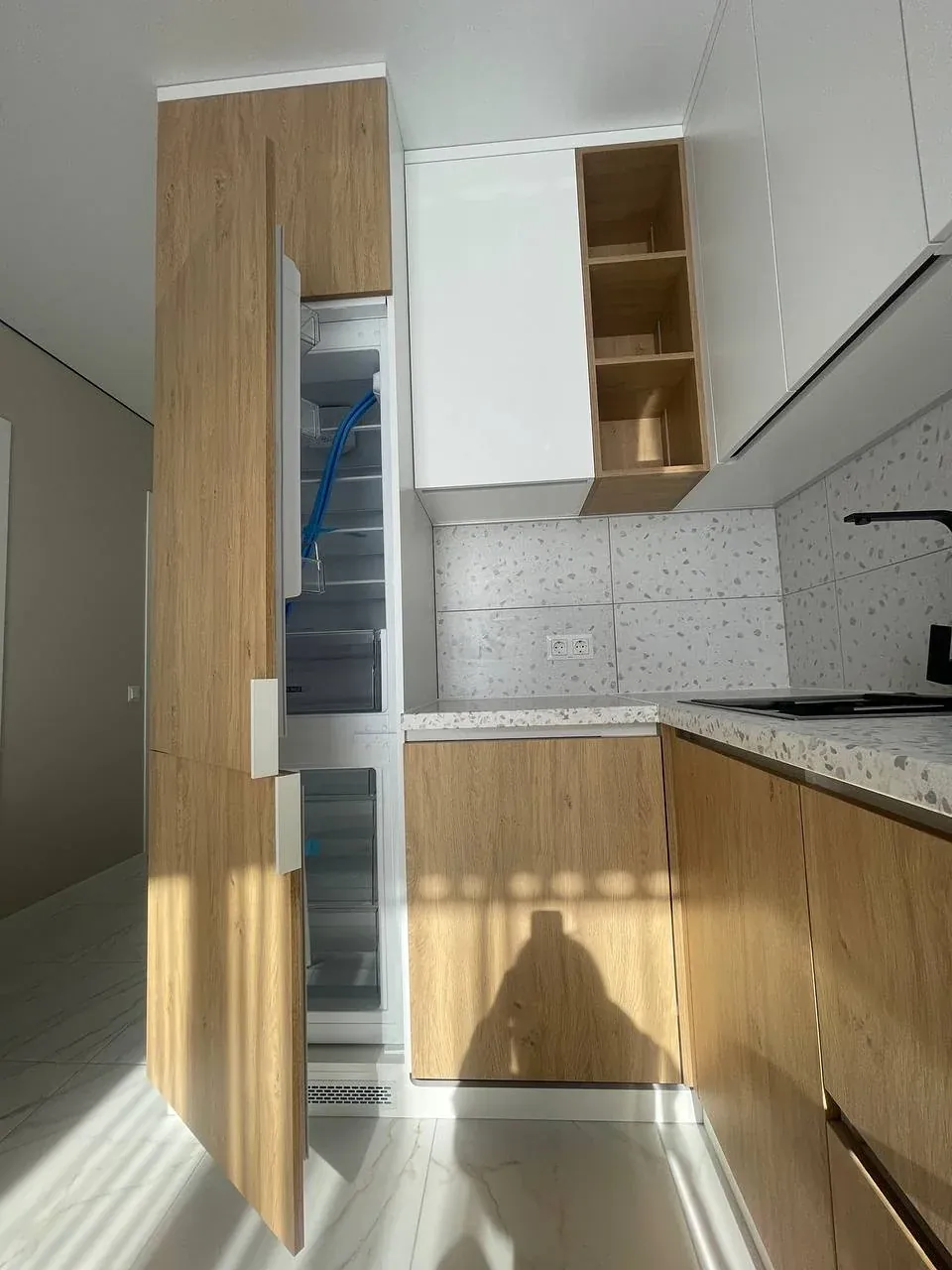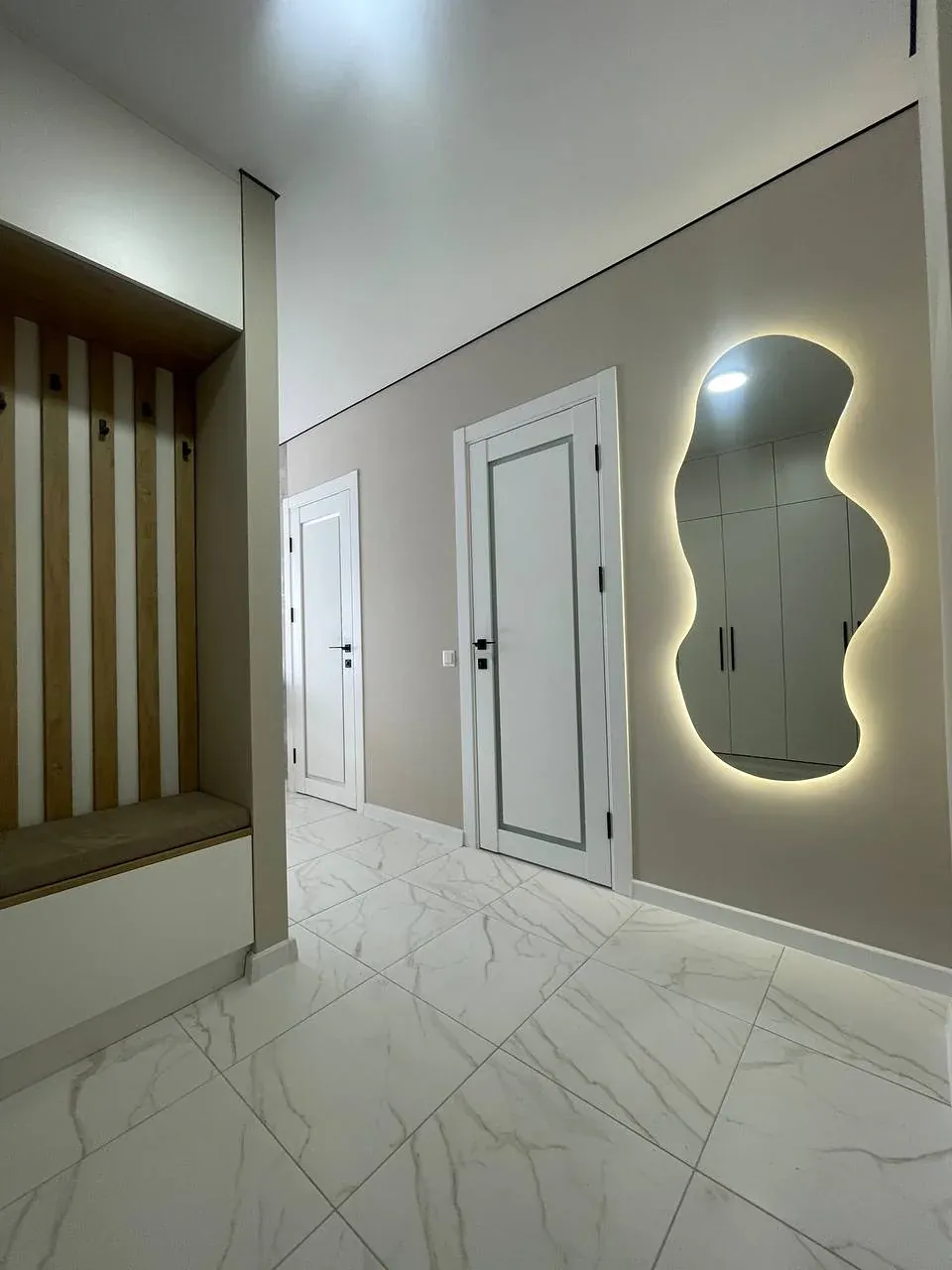 Інтерʼєр продуманий до деталей: простір використано максимально ефективно, передбачено багато місць для зберігання, що робить квартиру не тільки красивою, а й дуже функціональною.