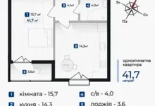- простора кухня 14.3 м2квадратної форми з виходом на відкритий балкон;