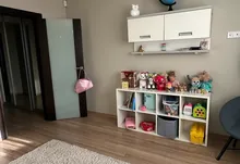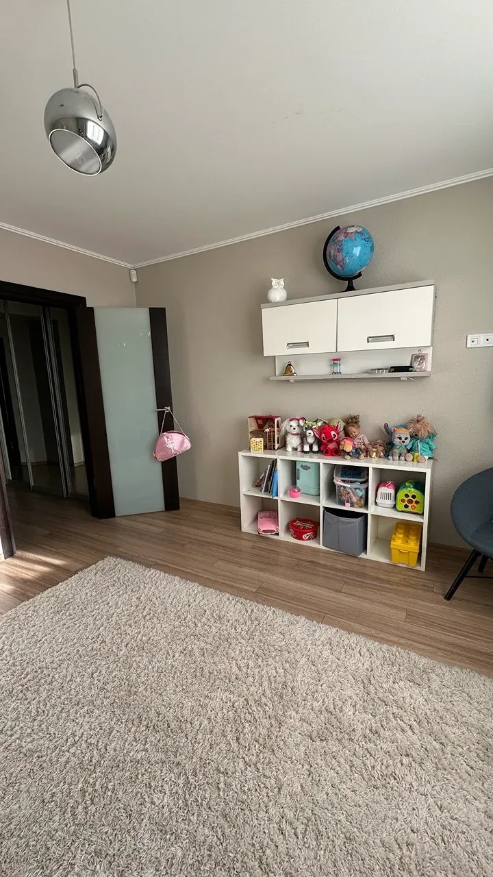 Другий рівень — більш приватна частина квартири. Тут облаштована комфортна зона відпочинку, де можна проводити вечори у колі сімʼї. Також розташована простора батьківська спальня з заскленим балконом, окрема дитяча кімната та велика ванна кімната.
