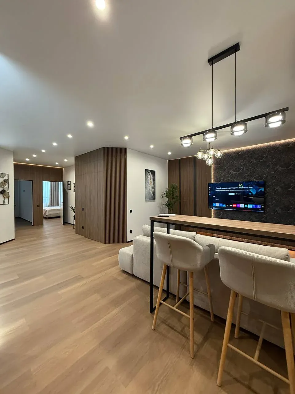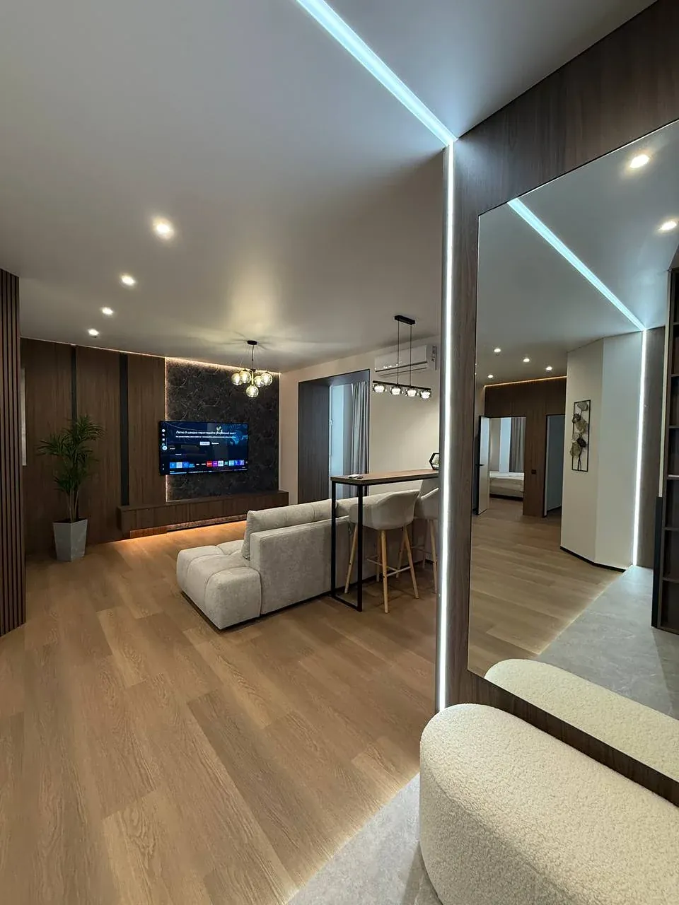 Індивідуальне опалення, тепла підлога по всій квартирі, зональне, декоративне та бігуче підсвічування — комфорт продуманий у кожній деталі.