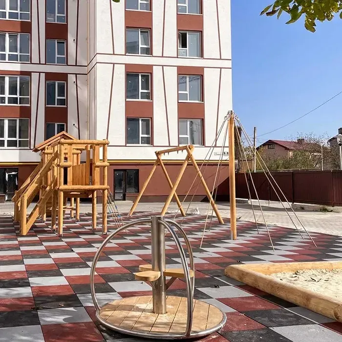 Житловий комплекс закритого типу з власною інфраструктурою, на території дитячі та спортивні майданчика, зелені відпочинкові зони, ландшафтний дизайн.