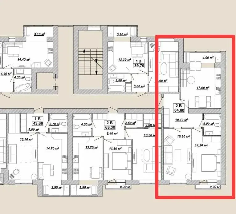 простора кухня 17м2 з лоджією 4м2, дві окремі кімнати, санвузол.