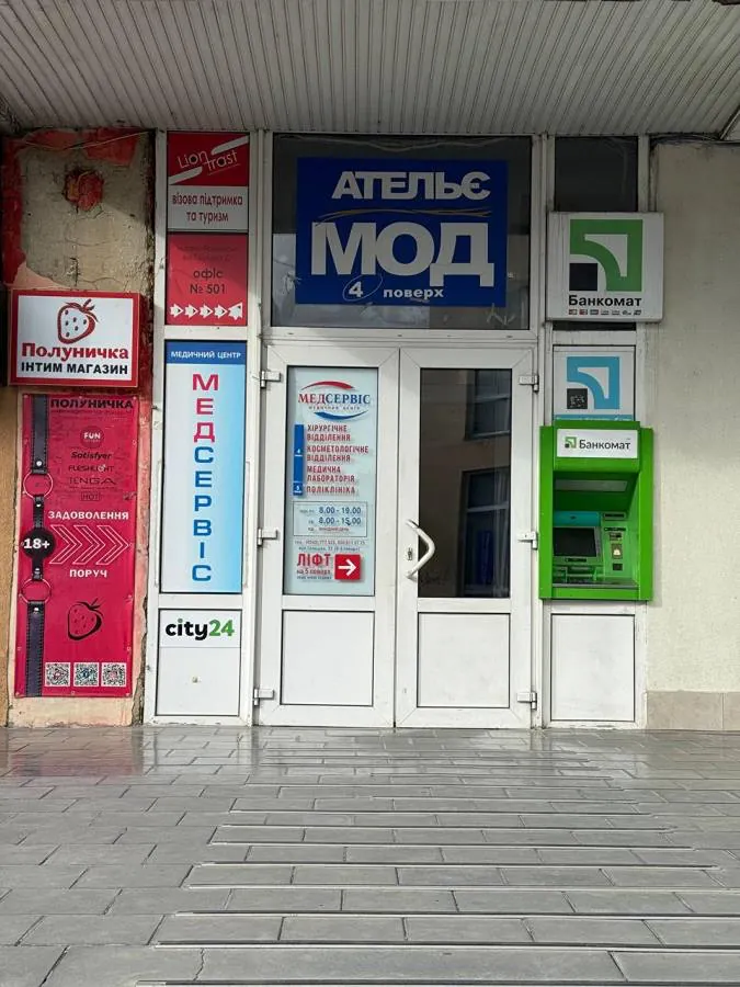 В будівлі активно ведеться комерційна діяльність від магазинів, майстерень до приватних клінік.