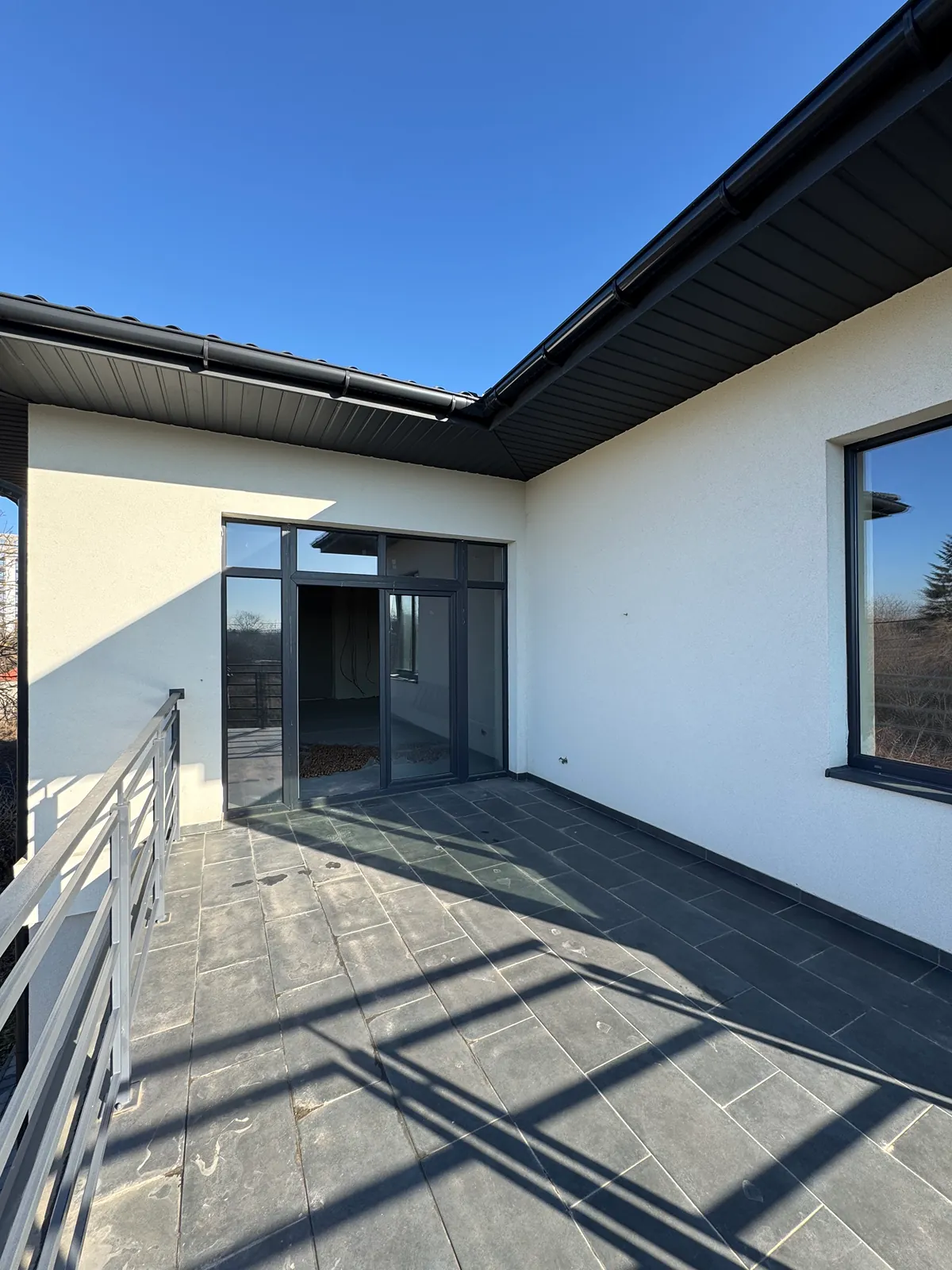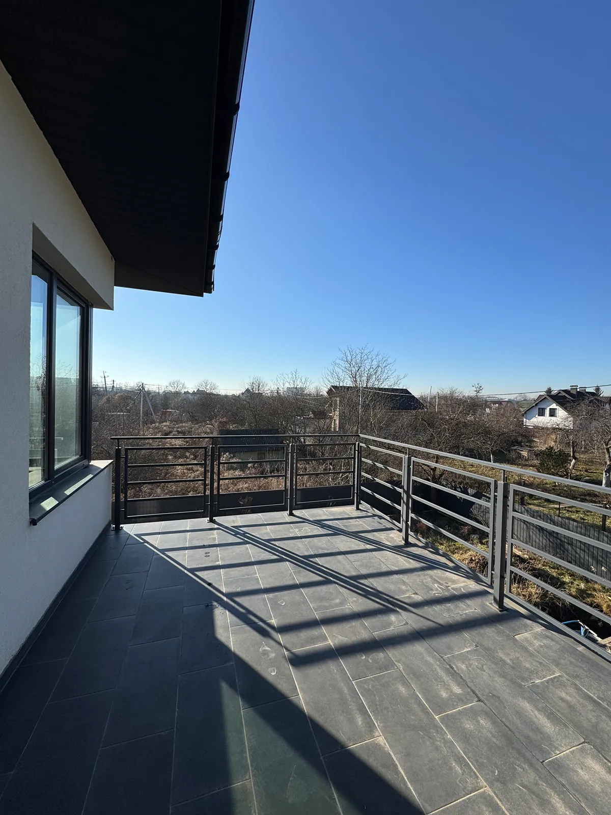Комфортний будинок на 5-ть кімнат з ефективно продуманим плануванням з просторою залою вітальнею та кухнею, 4-ма окремими спальнями, просторою терасою на другому поверсі, двома санвузлами, гардеробною та технічними приміщеннями.