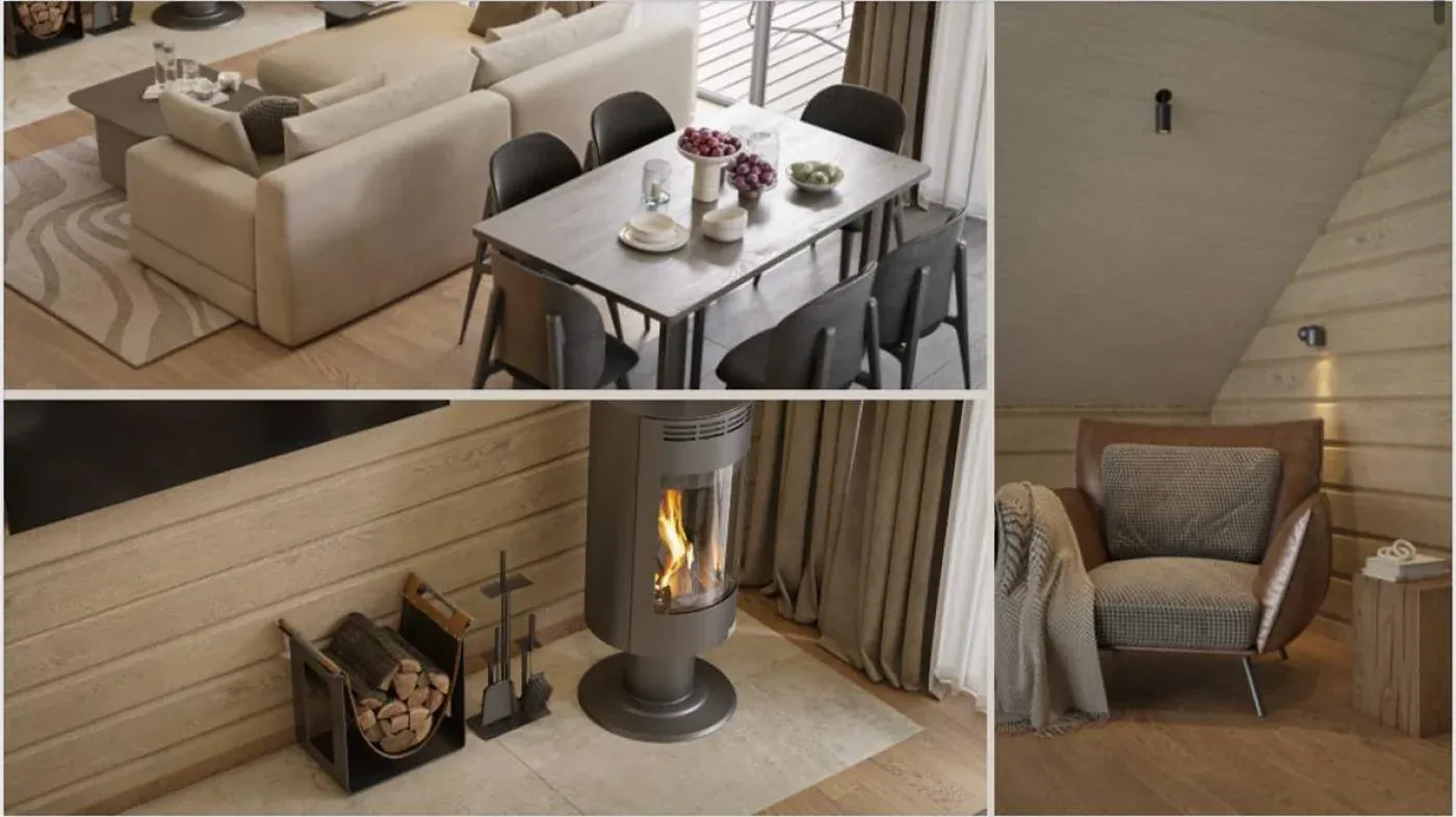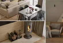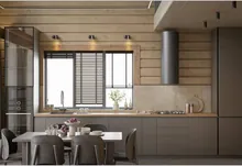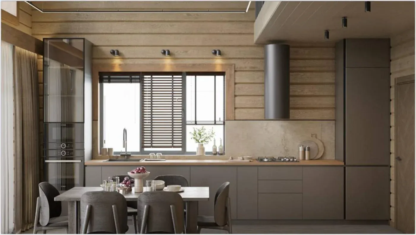 • Кухня-студія з каміном — затишок та сучасний стиль;