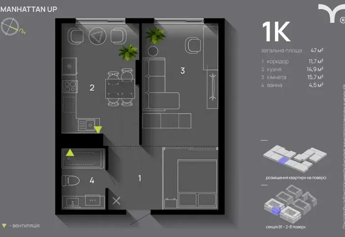 1-кімнатна квартира в ЖК Manhattan Up